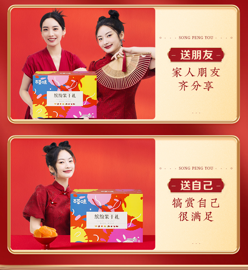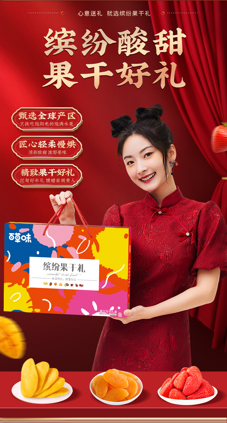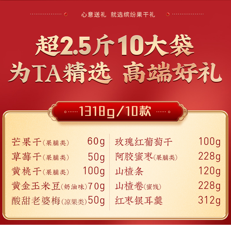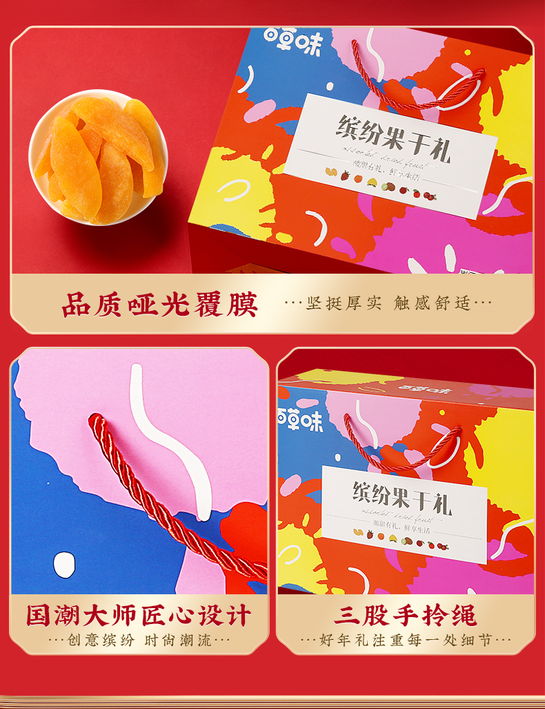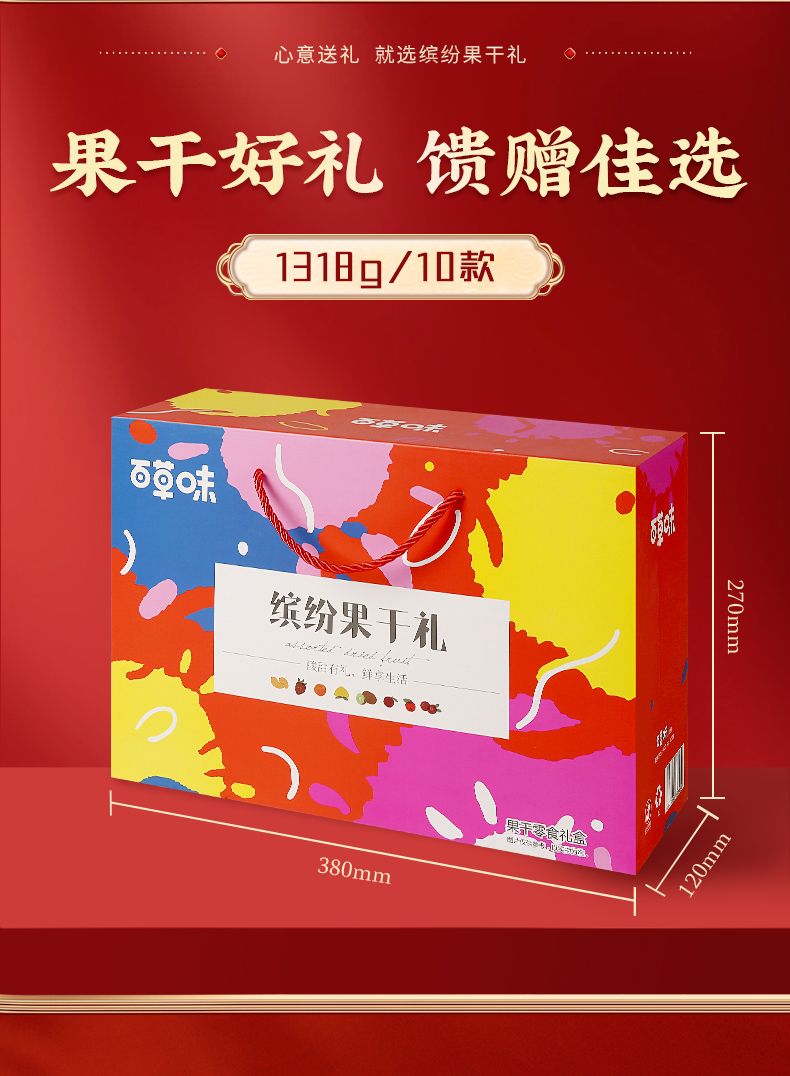 商品名称:【百草味】 缤纷果干礼1318g/盒 枫叶色