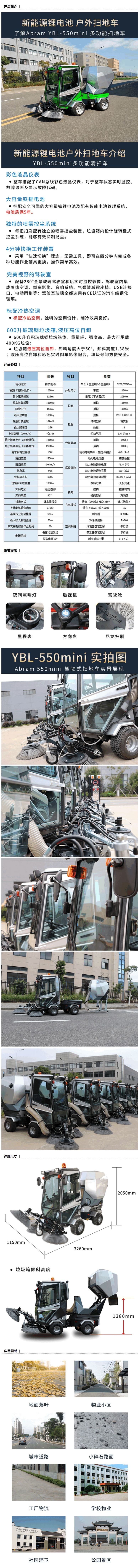 商品名称:亚伯兰 锂电池电动款多功能户外大型电动扫地车,YBL-550mini 1600㎡/h 76.8V420A