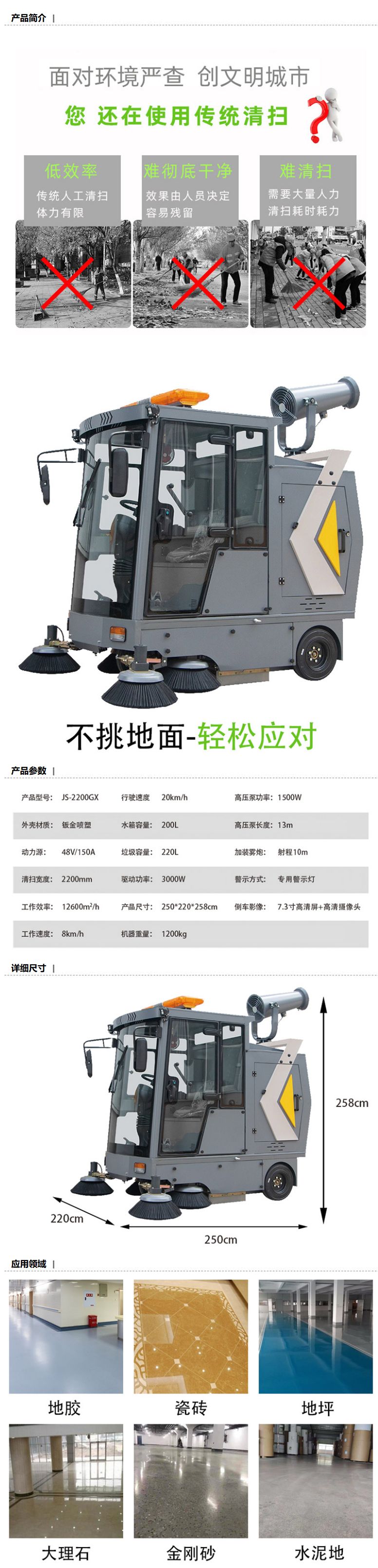 商品名称:威格瓦 清洁宽度2200mm 扫地车 全封闭式,JS-2200GX