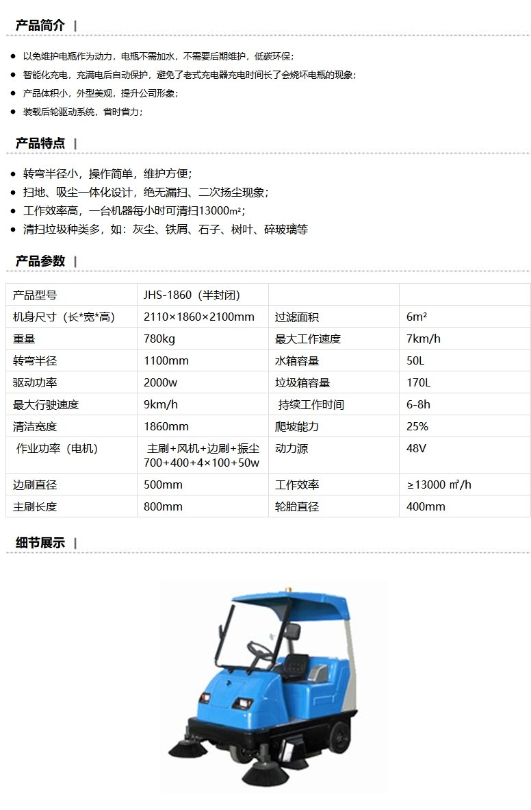 商品名称:洁德美电动驾驶式扫地机,JHS-1860(半封闭)(停产)
