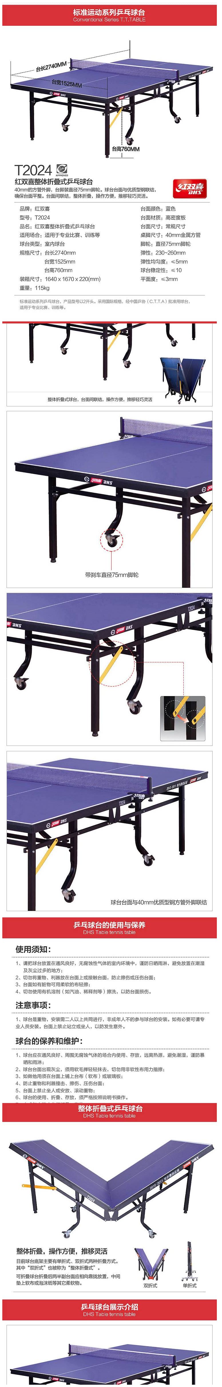 商品名称:红双喜T2024乒乓球桌(张)