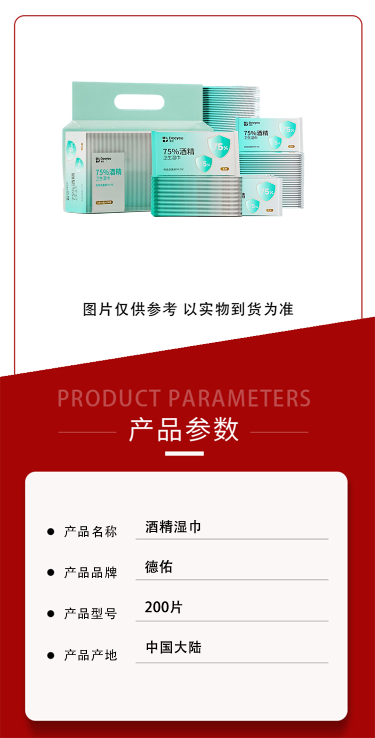 商品名称:德佑 200片 75% 酒精湿巾(单位:盒)