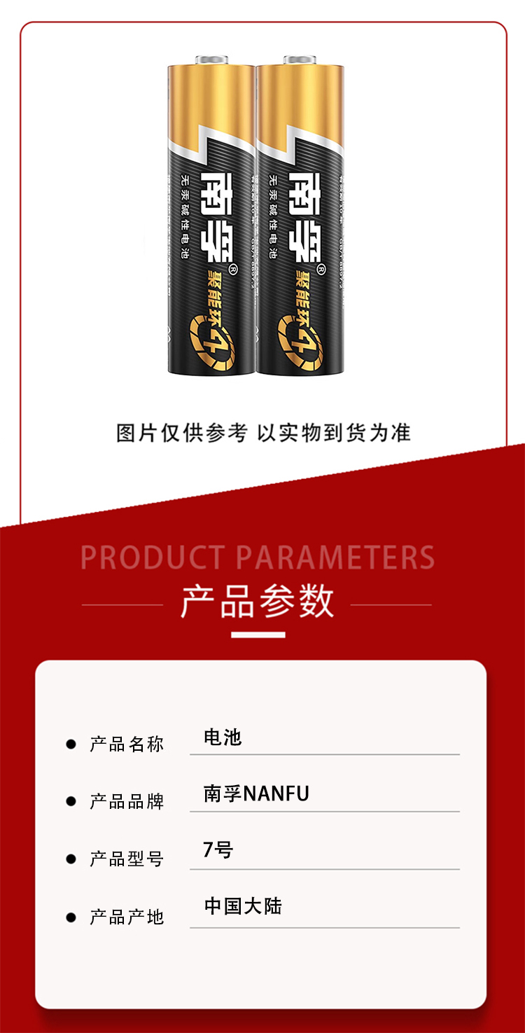 商品名称:南孚NANFU 7号 电池(单位:组)