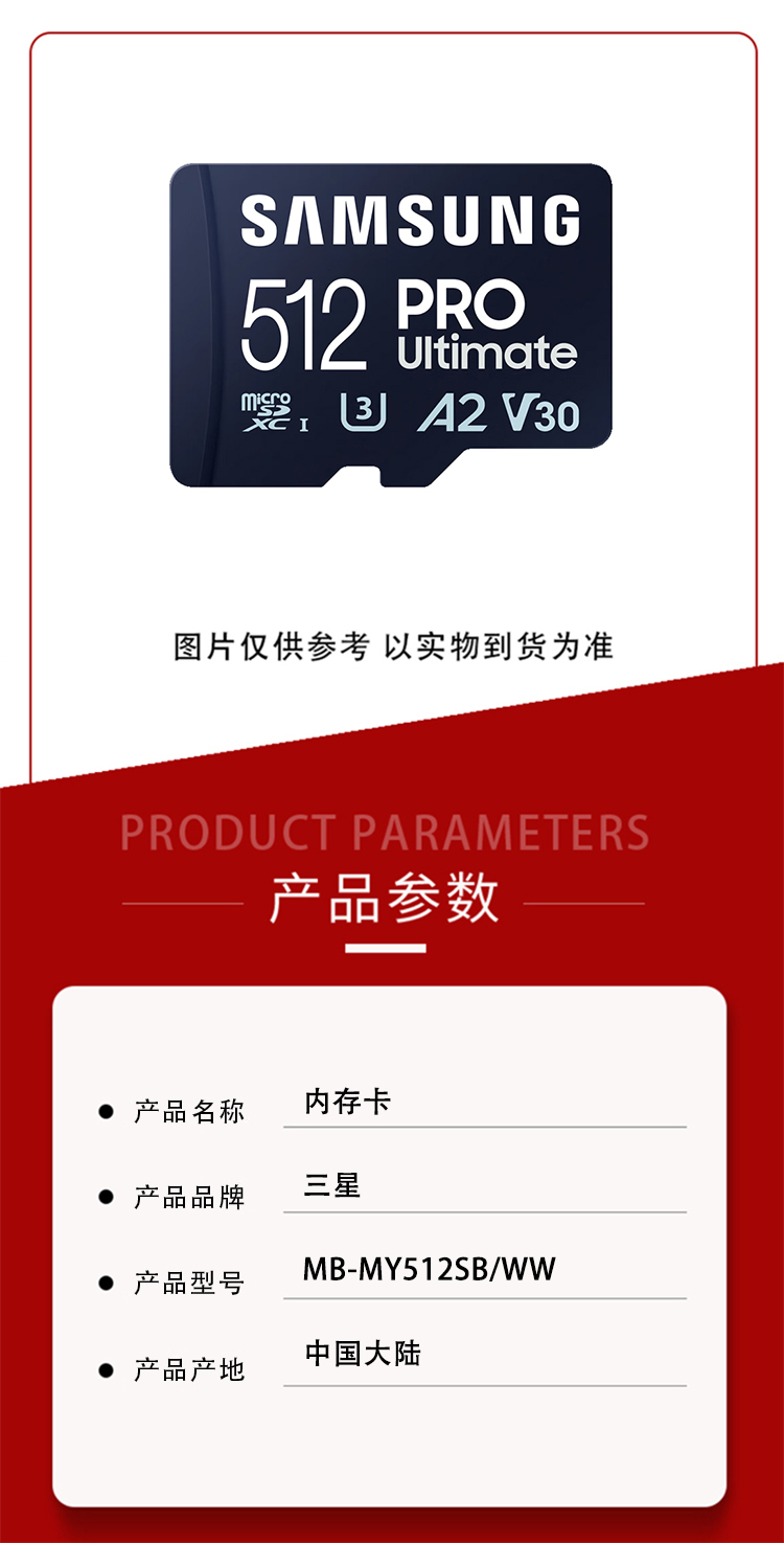 商品名称:三星 MB-MY512SB/WW 512GB 内存卡(单位:个)