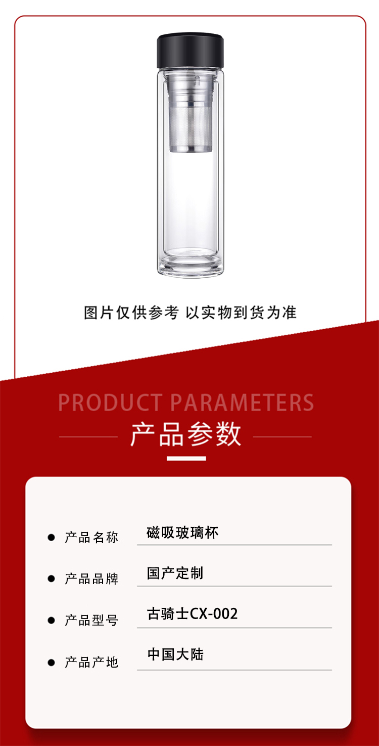 商品名称:国产定制 古骑士CX-002 320ml 磁吸玻璃杯(单位:件)