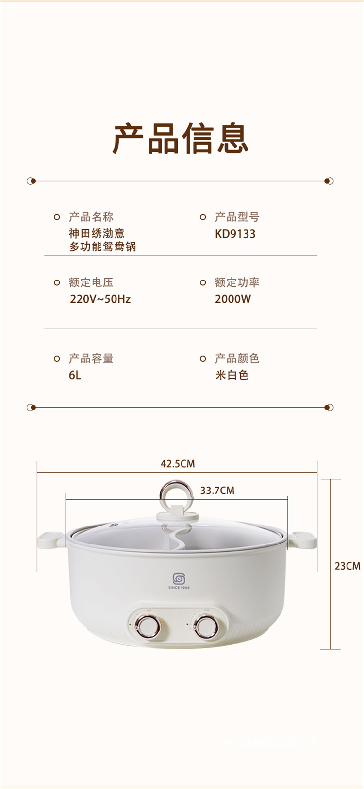 商品名称:神田绣渤意 KD9133 6L鸳鸯电火锅