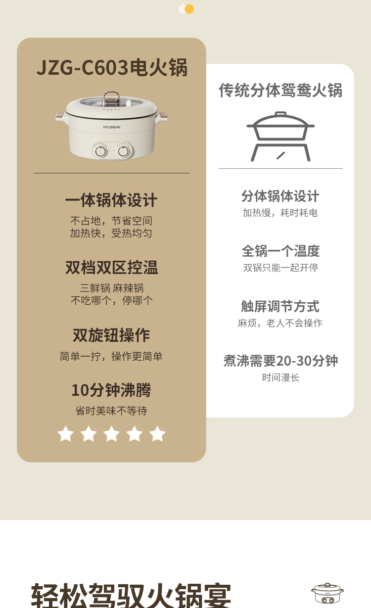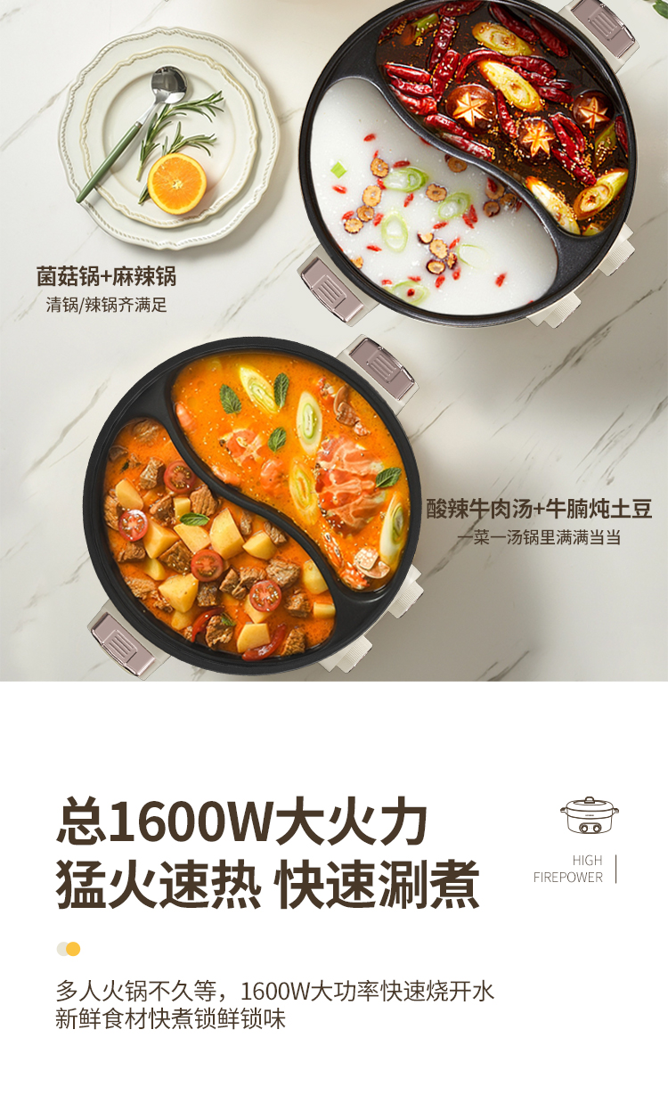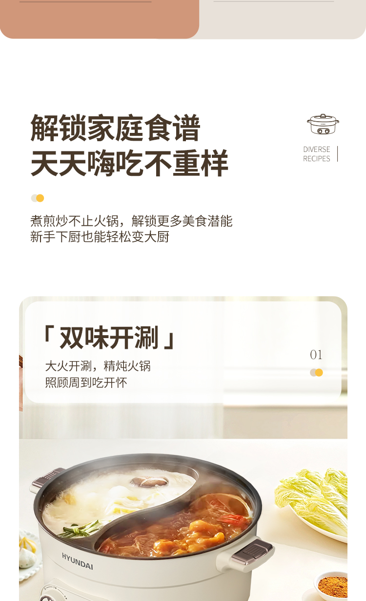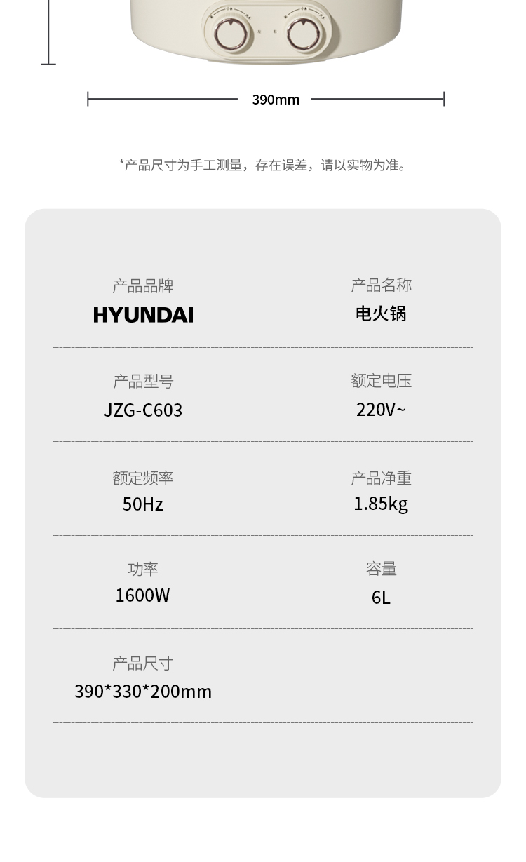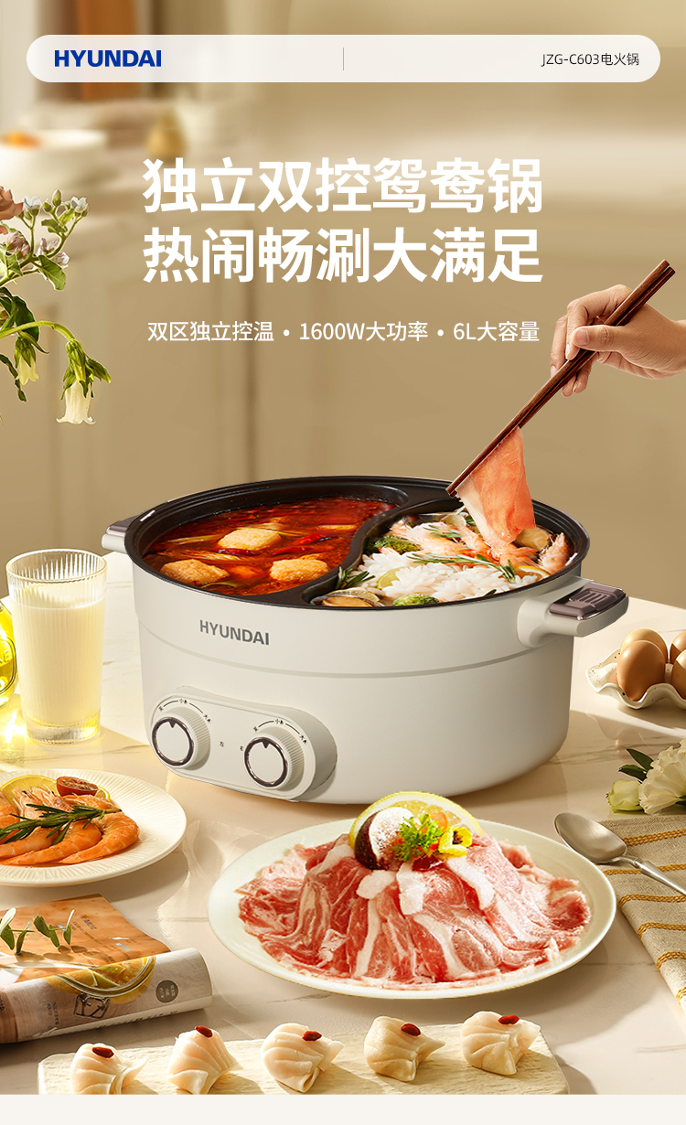 商品名称:HYUNDAI电火锅 JZG-C603( 鸳鸯电火锅)