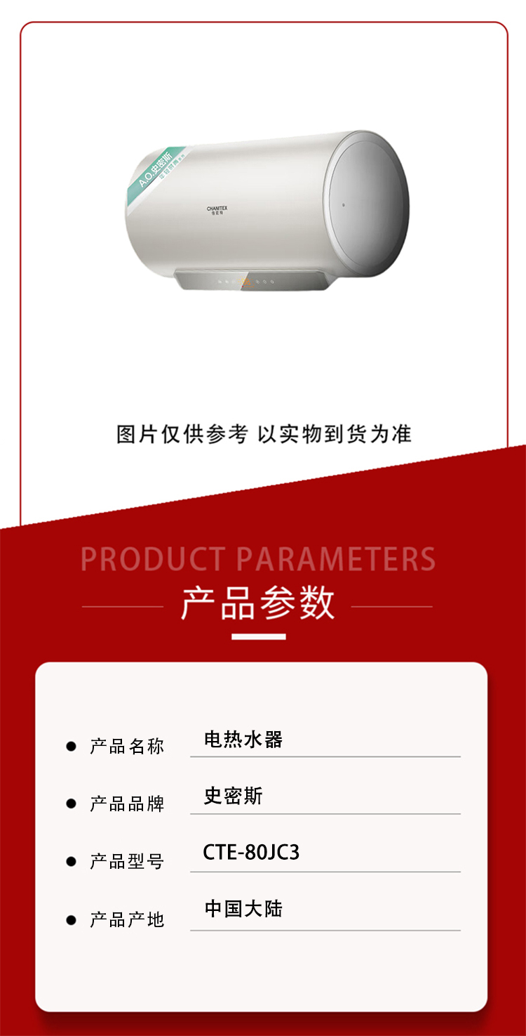 商品名称:史密斯 CTE-80JC3 80L 电热水器(单位:台)