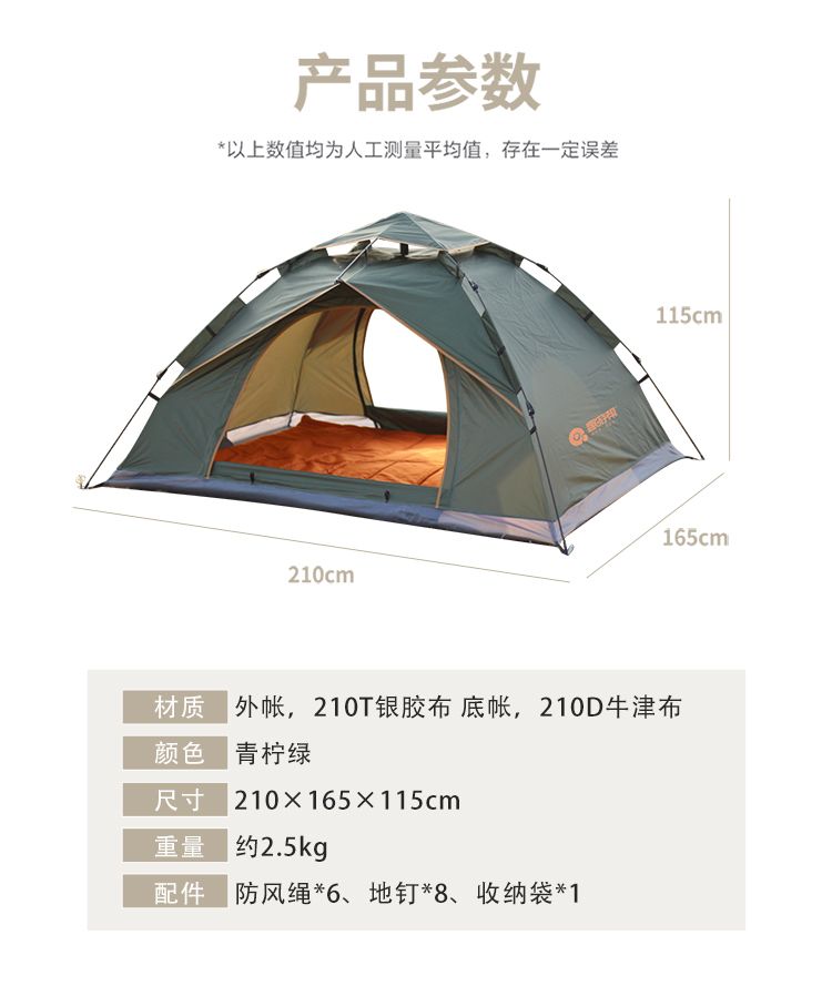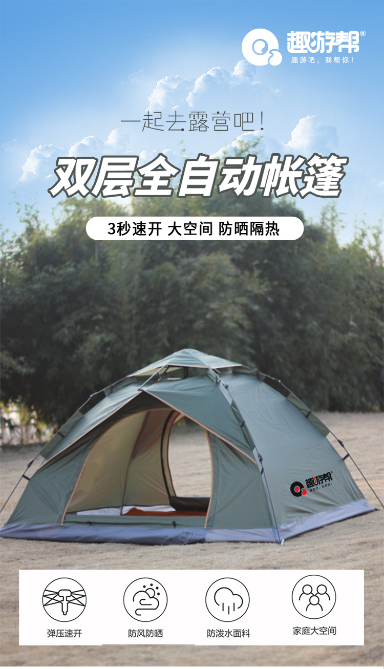 商品名称:趣游帮Y056 液压速开两门双层公园帐篷 青柠绿