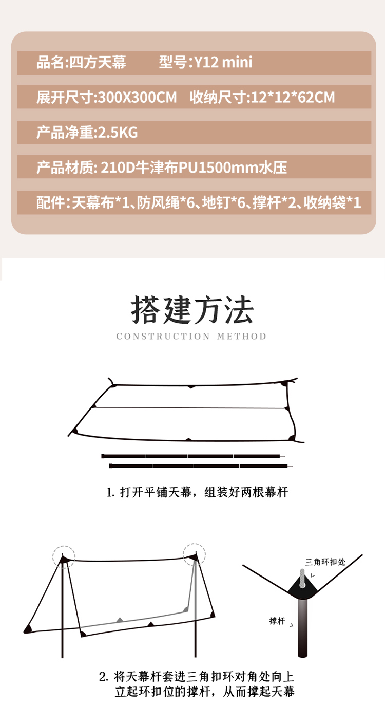 商品名称:趣游帮Y12mini 四方防水天幕 米白