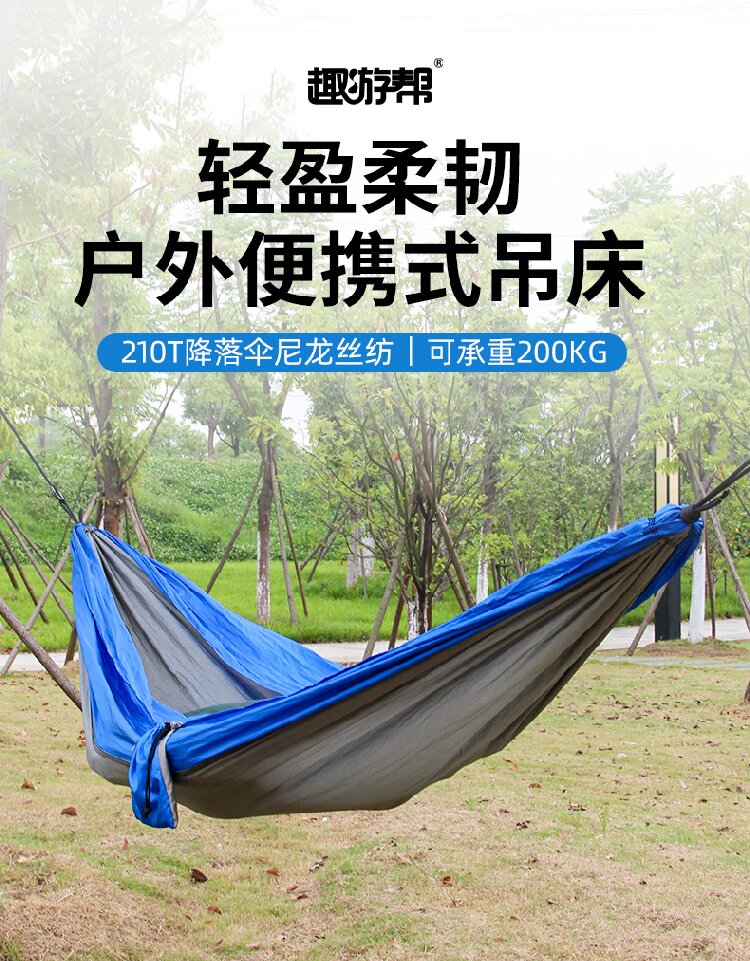 商品名称:趣游帮 Y11降落伞尼丝纺轻量化吊床 蓝拼灰
