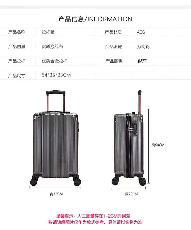 商品名称:趣游帮 JDY-1202万向20寸轮行李箱 银灰