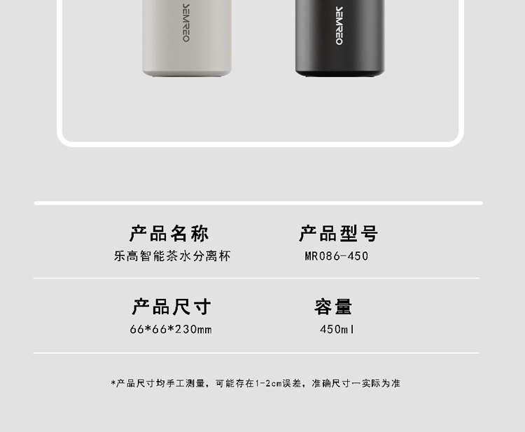 商品名称:斯密欧 MR086-450乐高智能茶水分离杯 白色 黑色