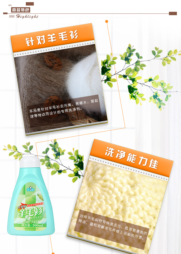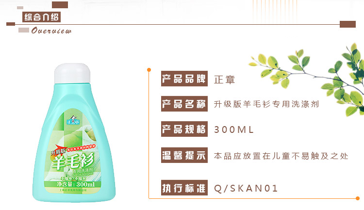 商品名称:正章升级版羊毛衫洗涤剂剂300ml*2瓶