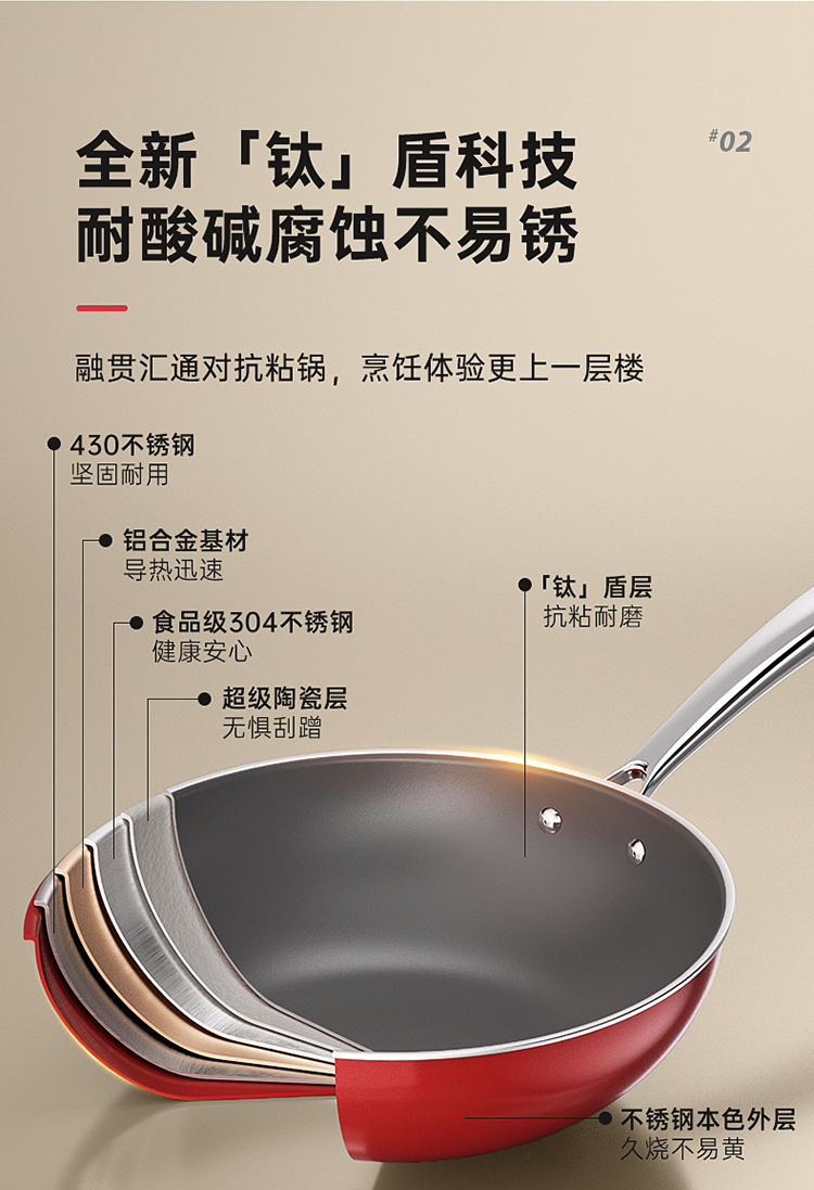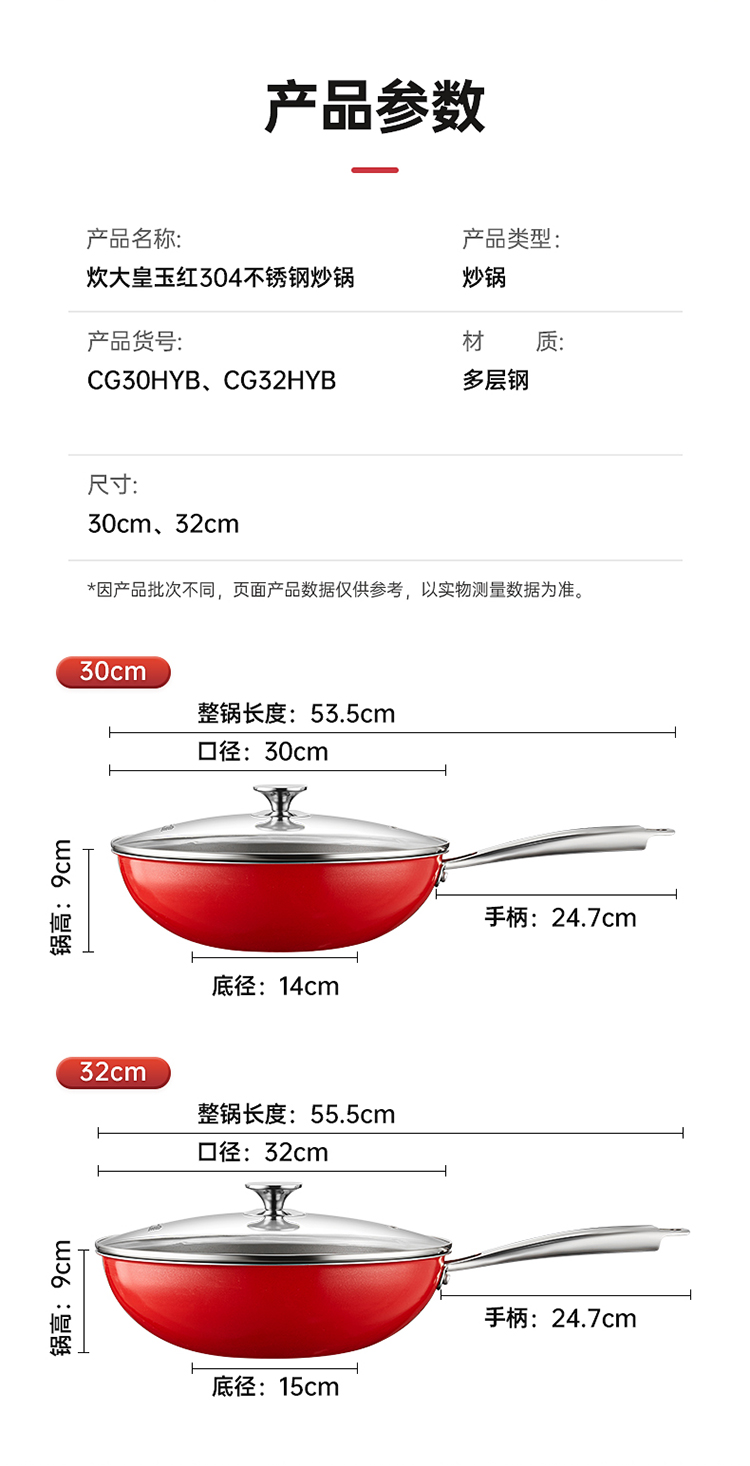 商品名称:炊大皇玉红304不锈钢炒锅32CMCG32HYB