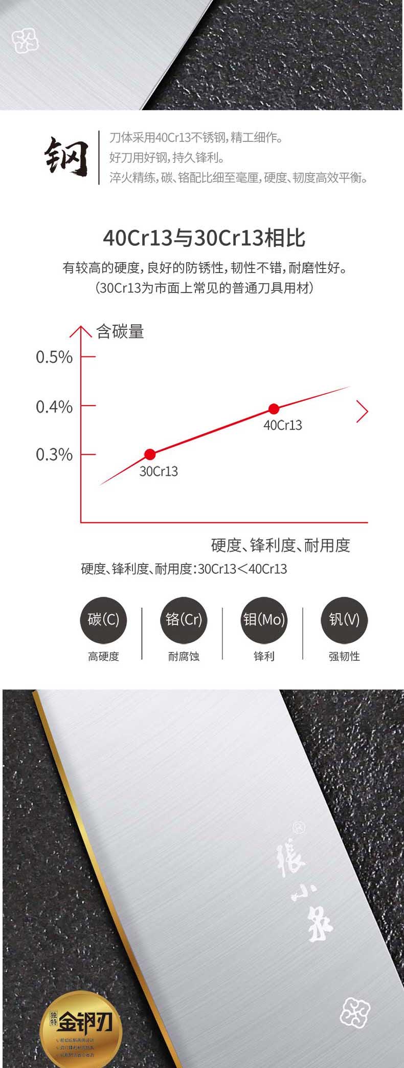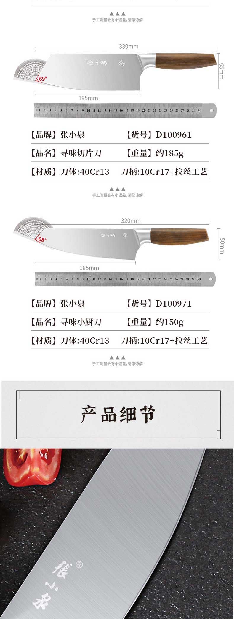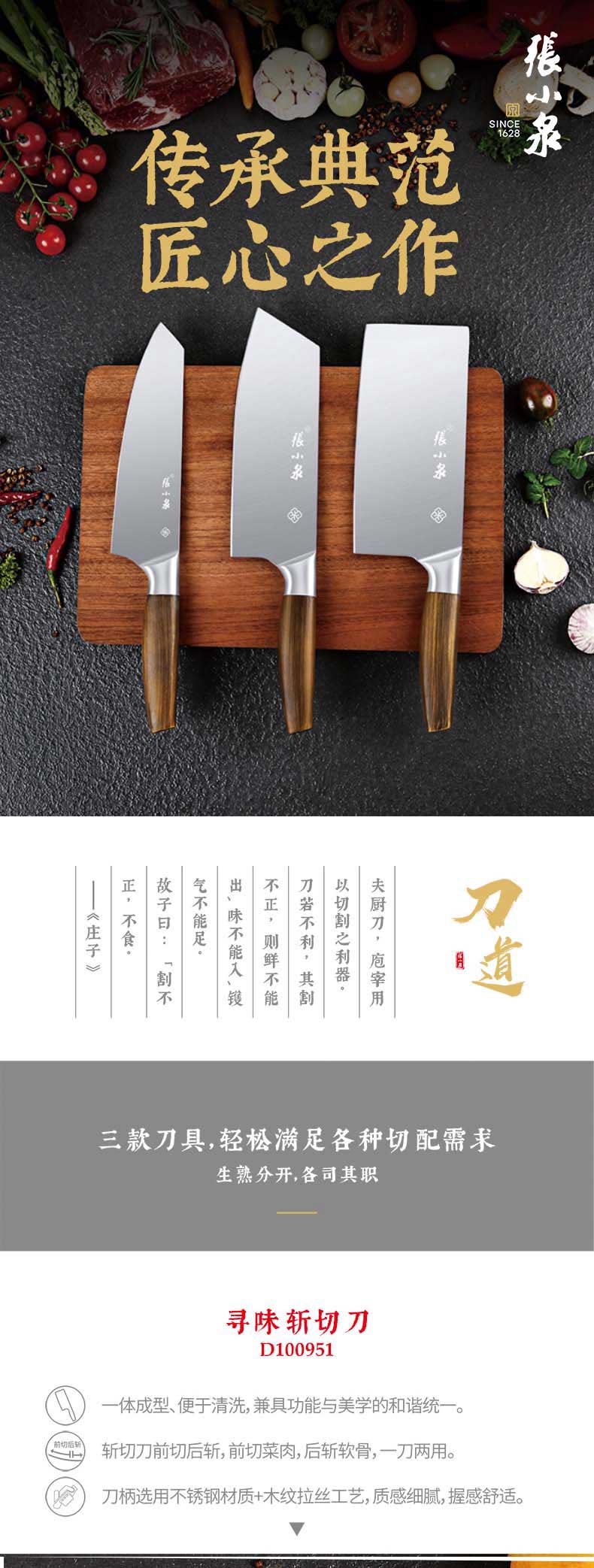 商品名称:张小泉 D100971 40Cr13不锈钢 寻味系列小厨刀 银色(单位:把)
