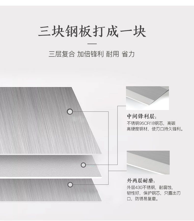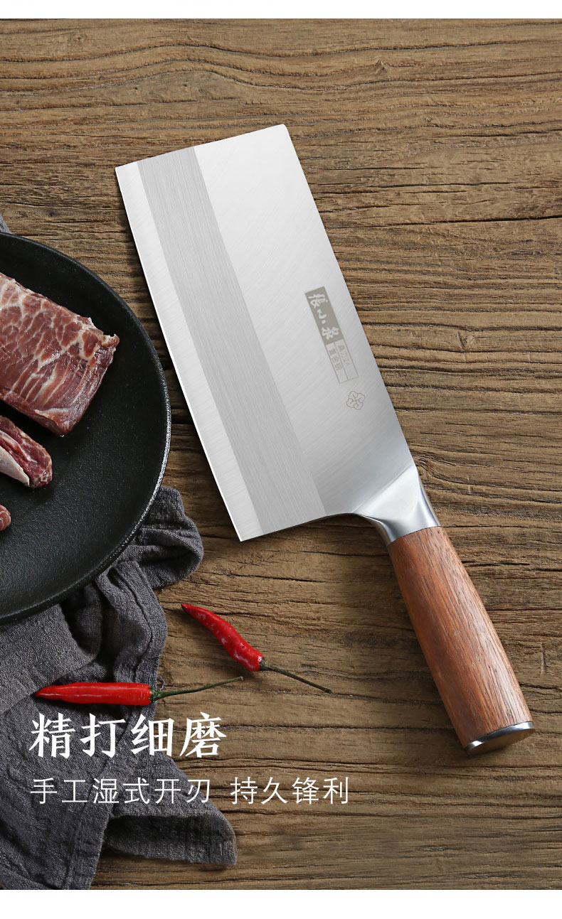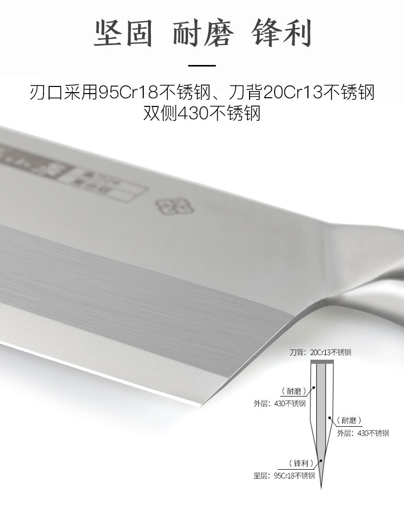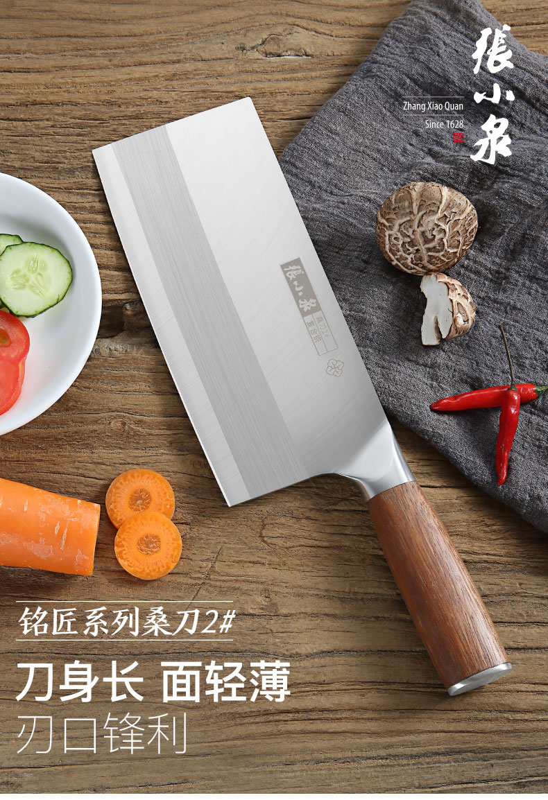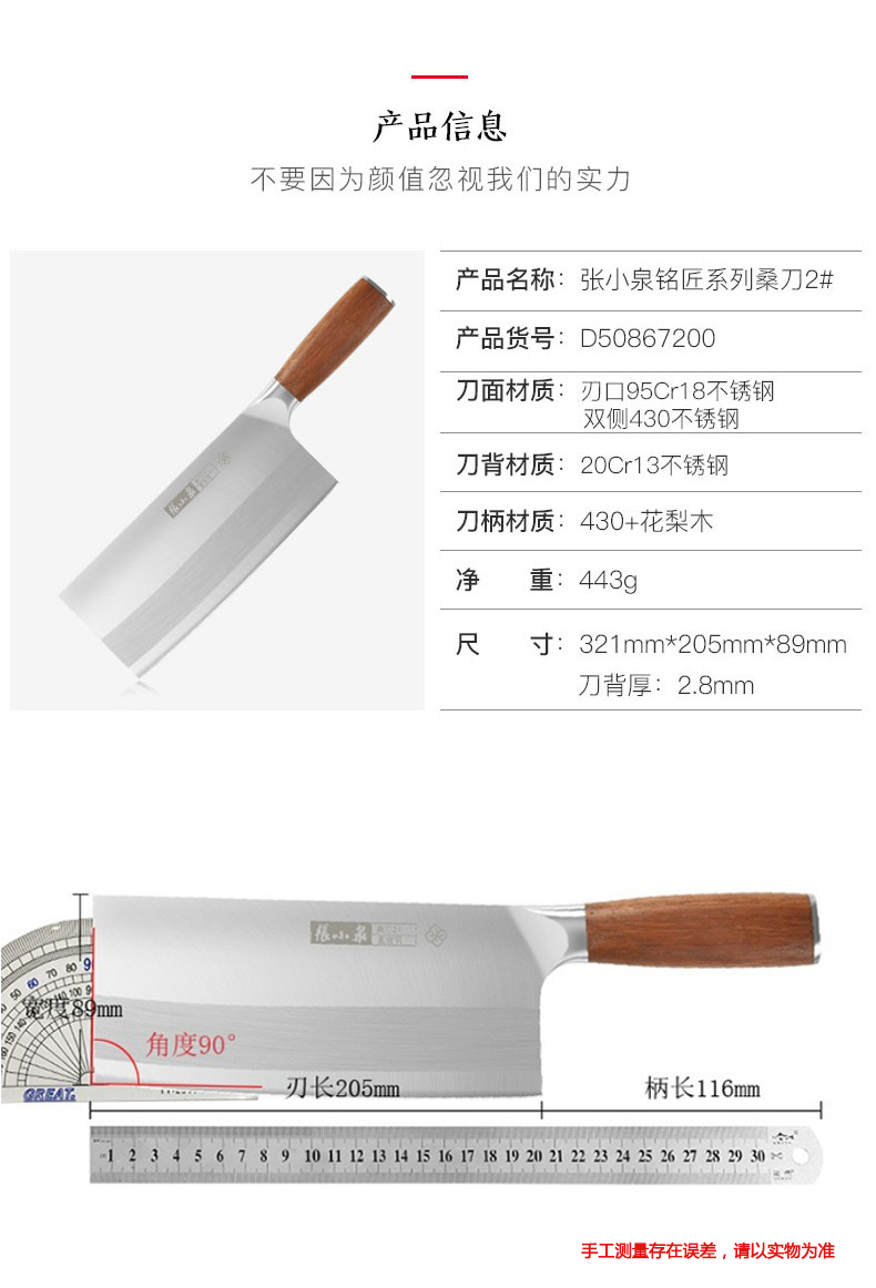 商品名称:张小泉 D50867200 95Cr18不锈钢,双侧430不锈钢/刀背材质:20Cr13不锈钢/刀柄材质:430+ 铭匠系列桑刀2# 银色(单位:把)