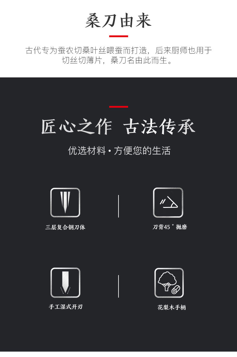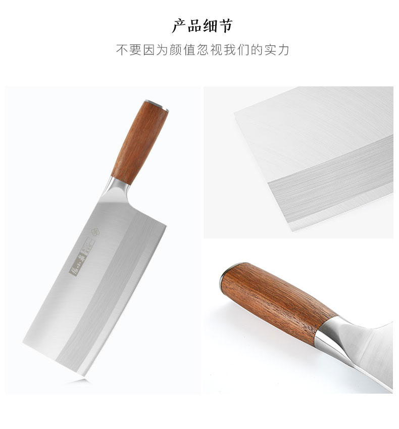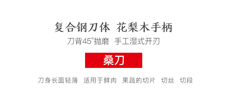 商品名称:张小泉 D50867100 刀面材质:刀口95Cr18不锈钢,双侧12CR13不锈钢/刀背材质:20Cr13不锈钢/刀柄材质:430+花梨木 铭匠系列桑刀1# 银色(单位:把)