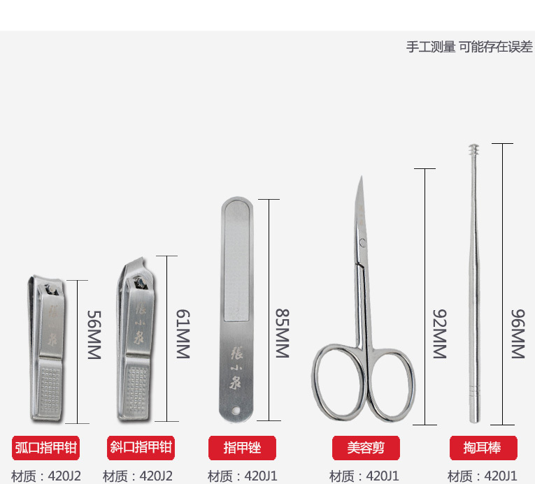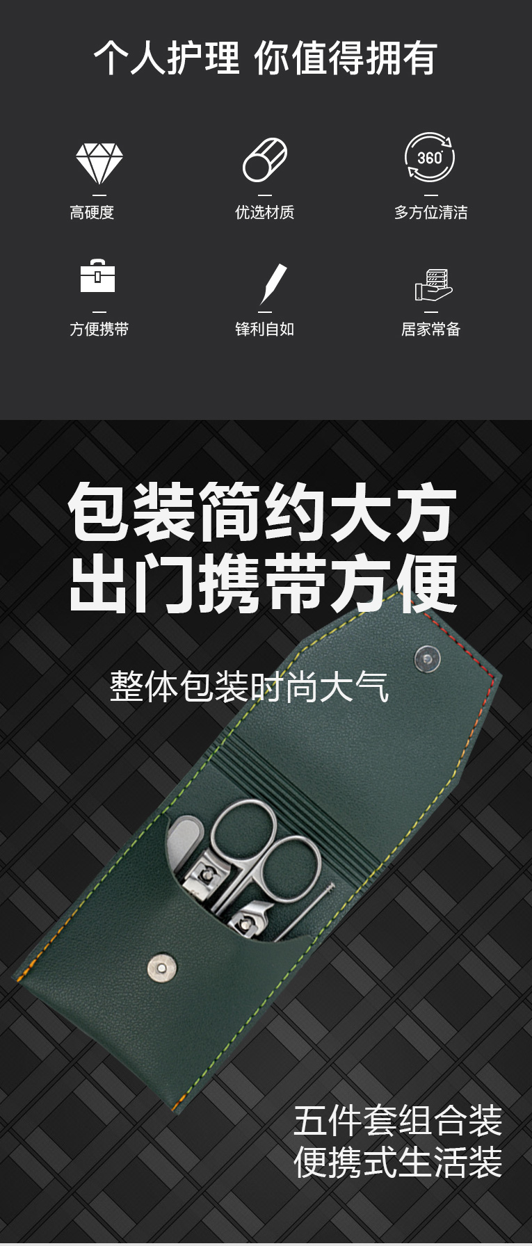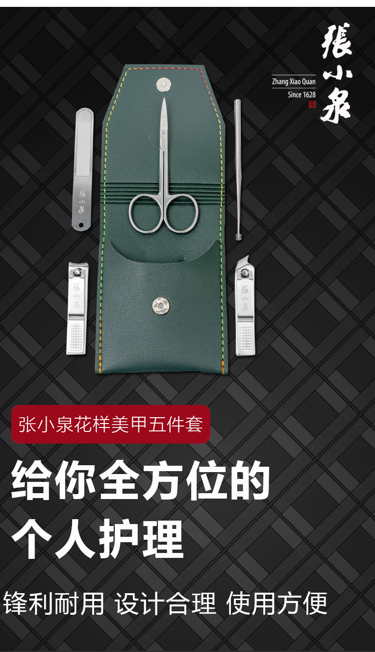 商品名称:张小泉 H41375000 不锈钢 花样美甲套装五件套 绿色(单位:套)