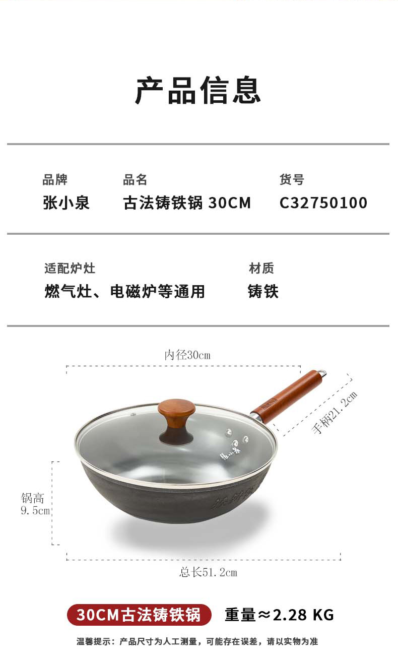 商品名称:张小泉 C32750100 铸铁 古法铸铁锅 30cm 黑色(单位:个)