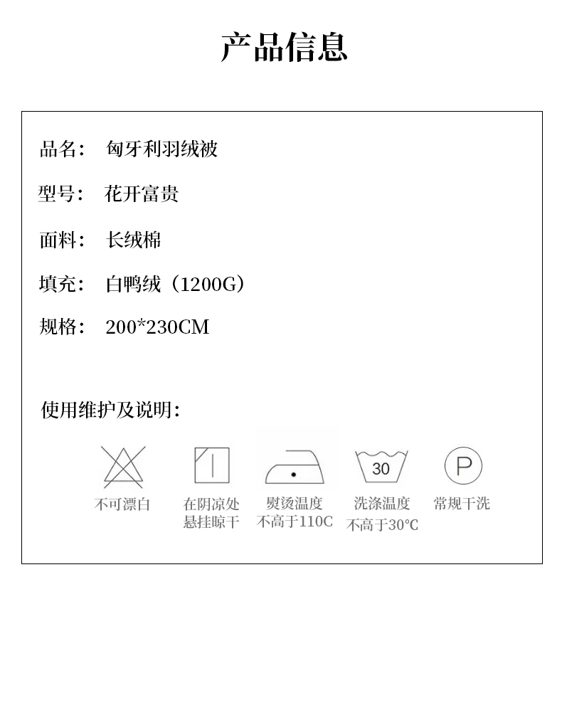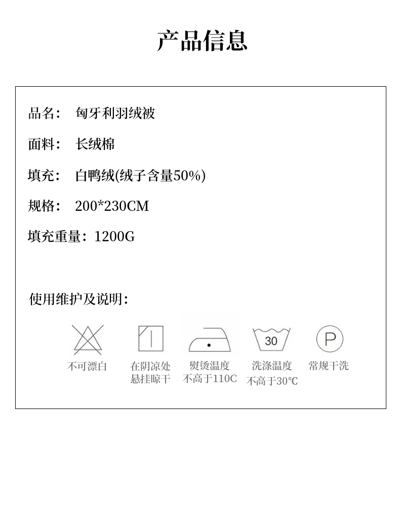 商品名称:红秀世纺 SF2309-C001 200*230cm 匈牙利羽绒被(单位:条)