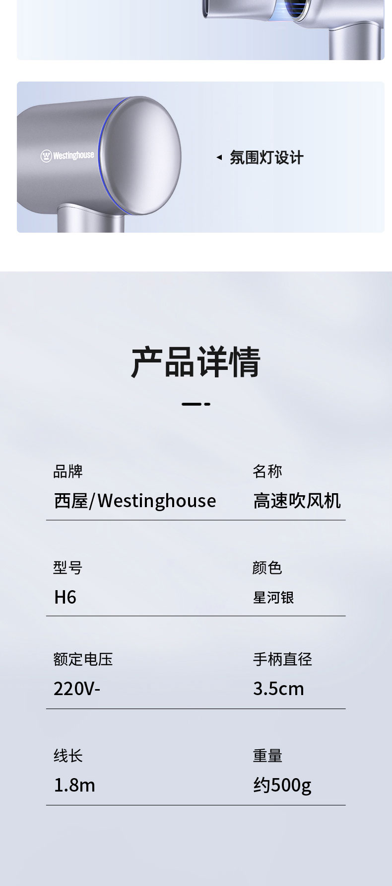 商品名称:西屋 H6 1600W 负离子高速吹风机(单位:个)