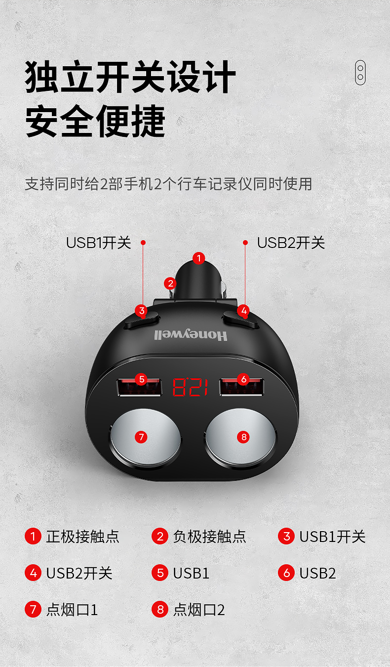 商品名称:霍尼韦尔 HZH2 88g 多功能一分二点烟器(单位:个)