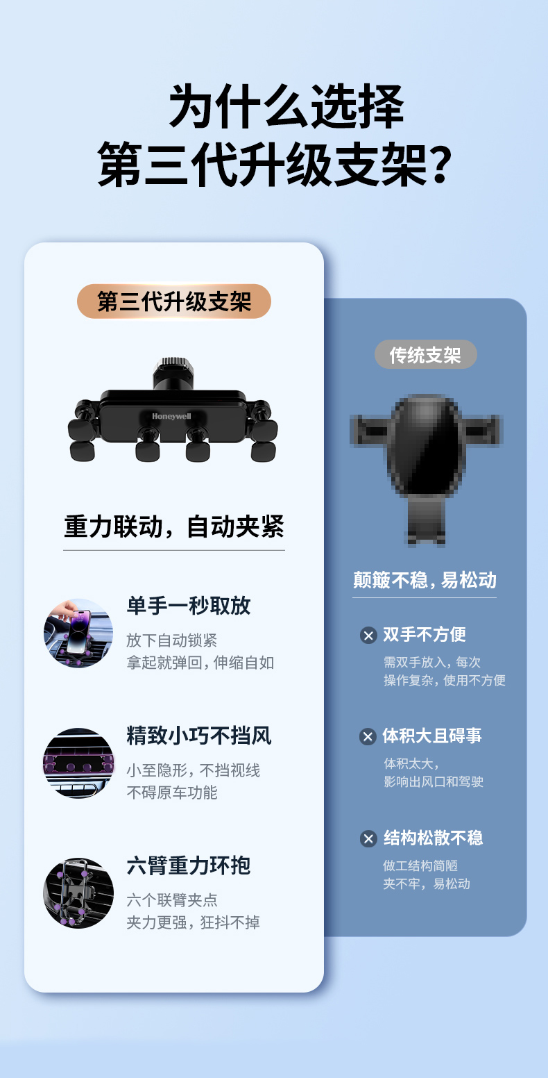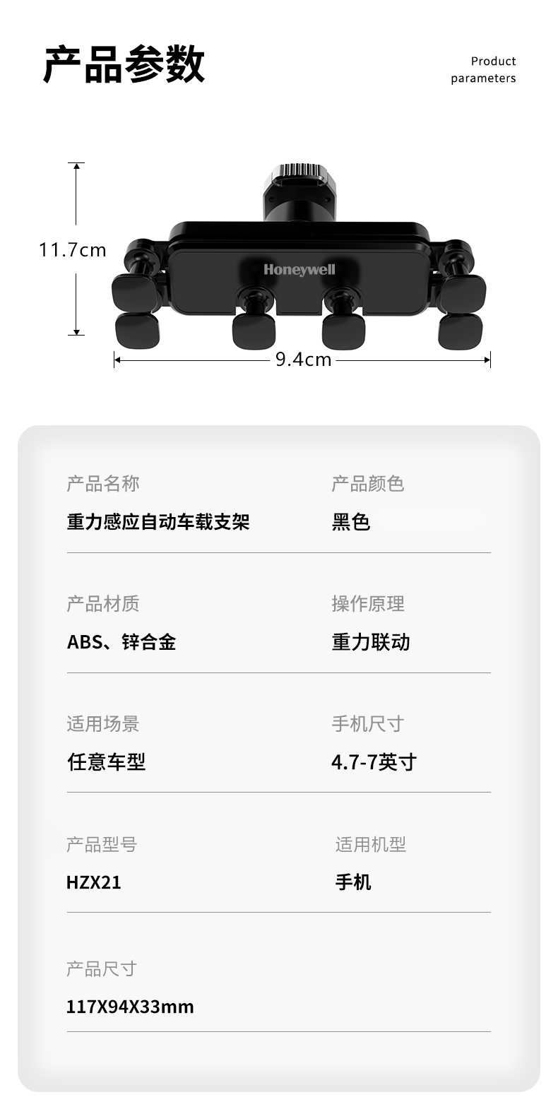 商品名称:霍尼韦尔 HZX21 91g 重力感应自动车载支架(单位:个)