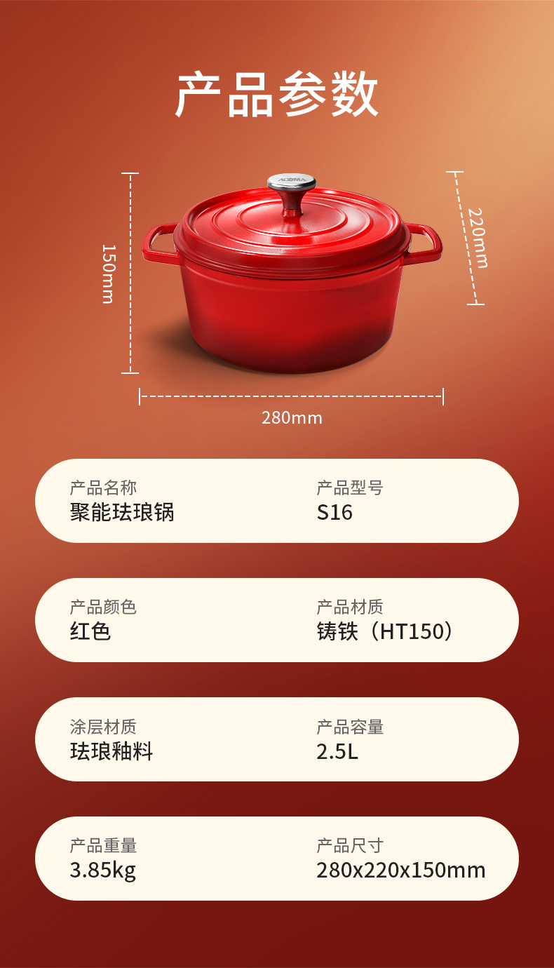 商品名称:澳得迈 S16 2.5L 聚能珐琅锅(单位:个)