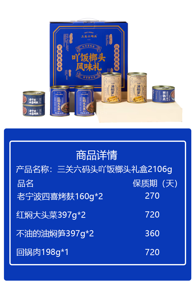 商品名称:三关六码头 DN0100200040083 2106g 吖饭榔头礼盒(单位:盒)