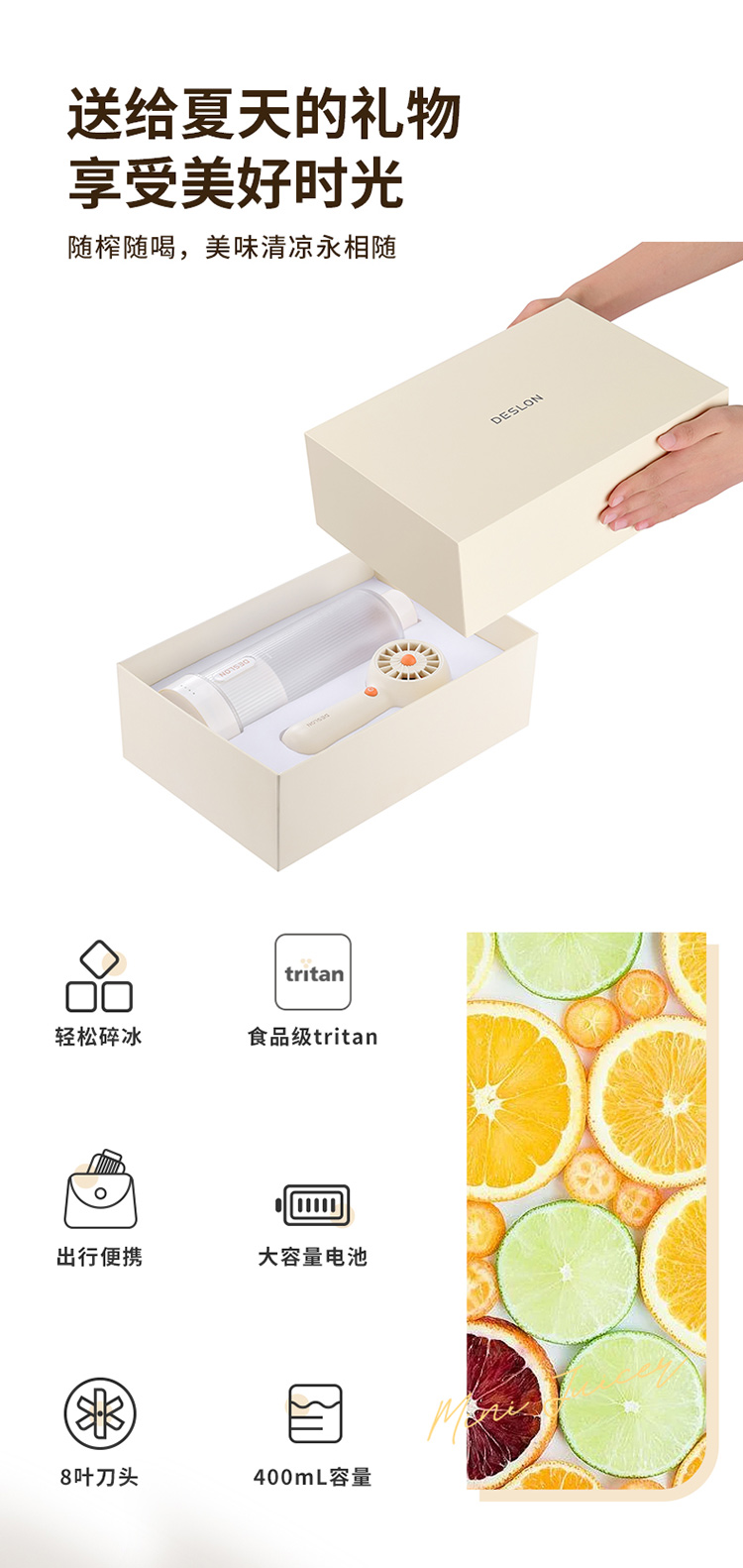 商品名称:德世朗 DDQ-TZ01 400mL 榨汁机-小风扇(套装)(单位:个)