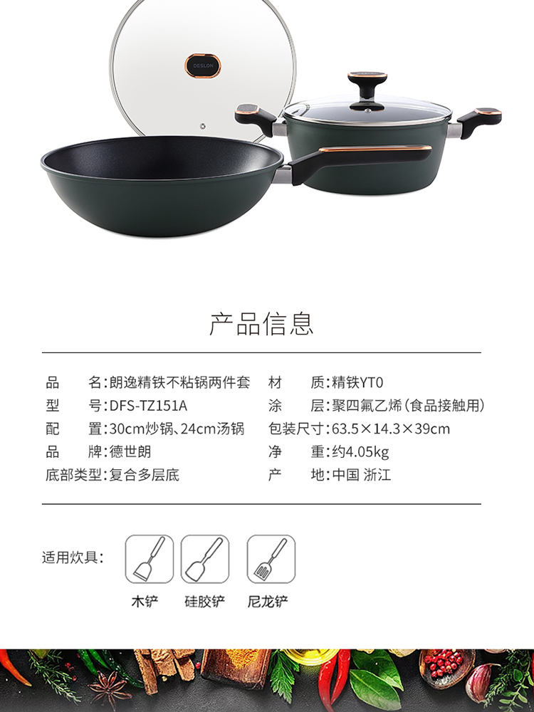商品名称:德世朗 DFS-TZ151A 朗逸精铁 不粘锅两件套(单位:个)