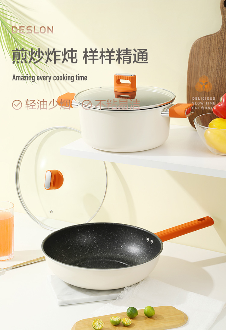 商品名称:德世朗 DFS-TZ936A 30cm炒锅/24cm汤锅 锦“橙”精铁不粘锅两件套(单位:套)