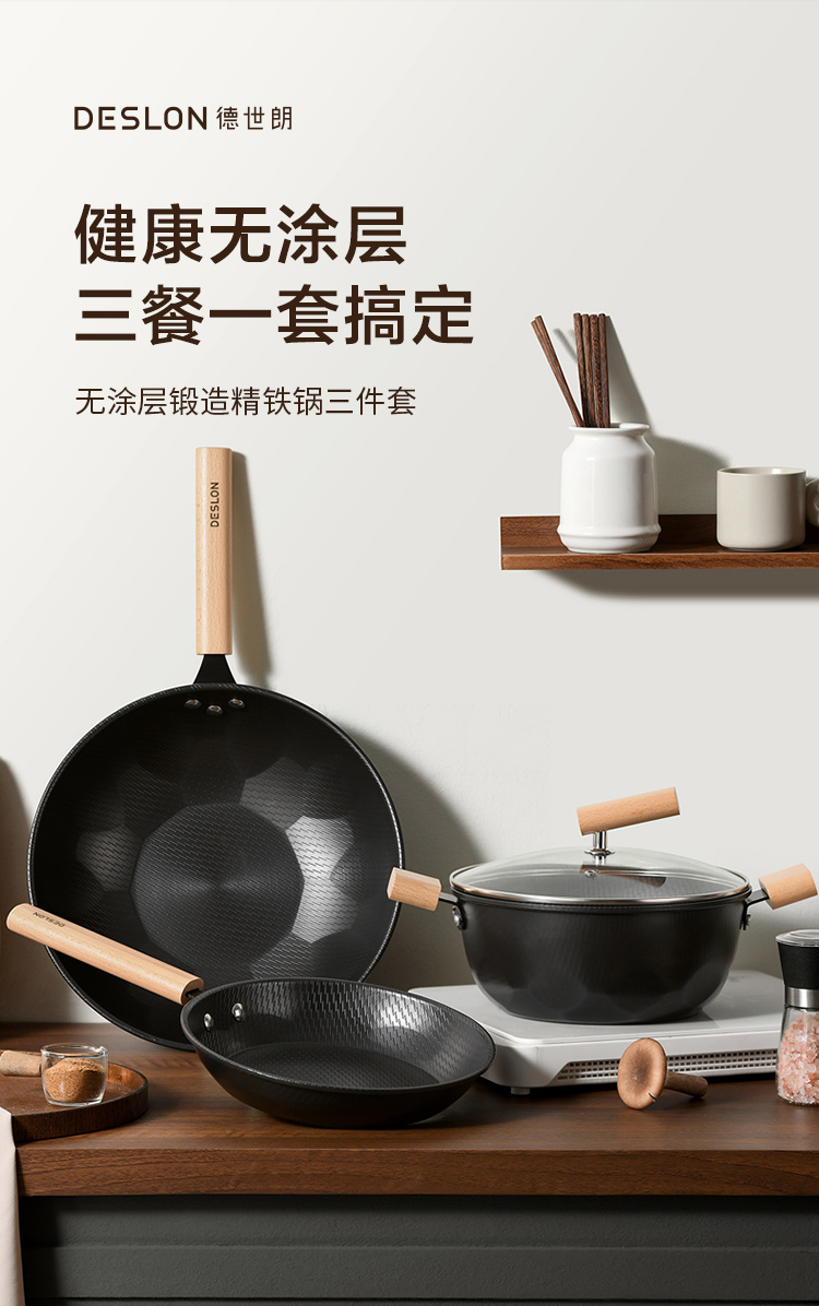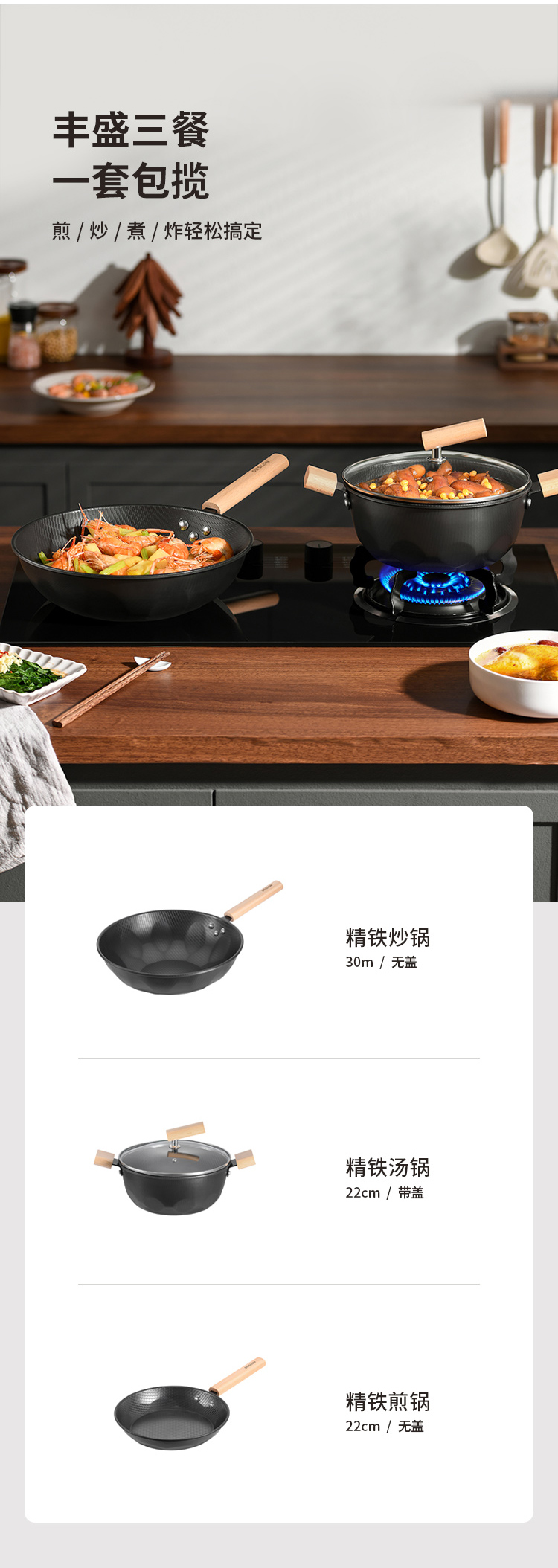 商品名称:德世朗 DFS-TZ834B 无涂层锻造 精铁锅三件套(单位:套)