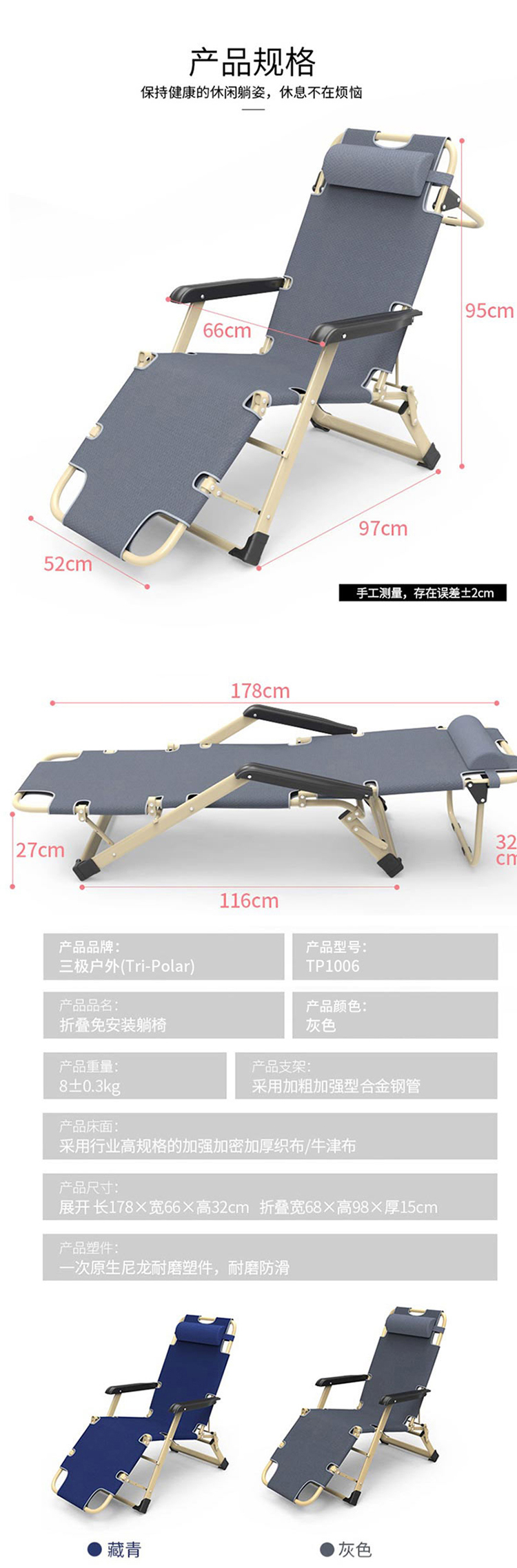 商品名称:三极 TP1006 178*66*32cm 折叠床 灰色(单位:张)