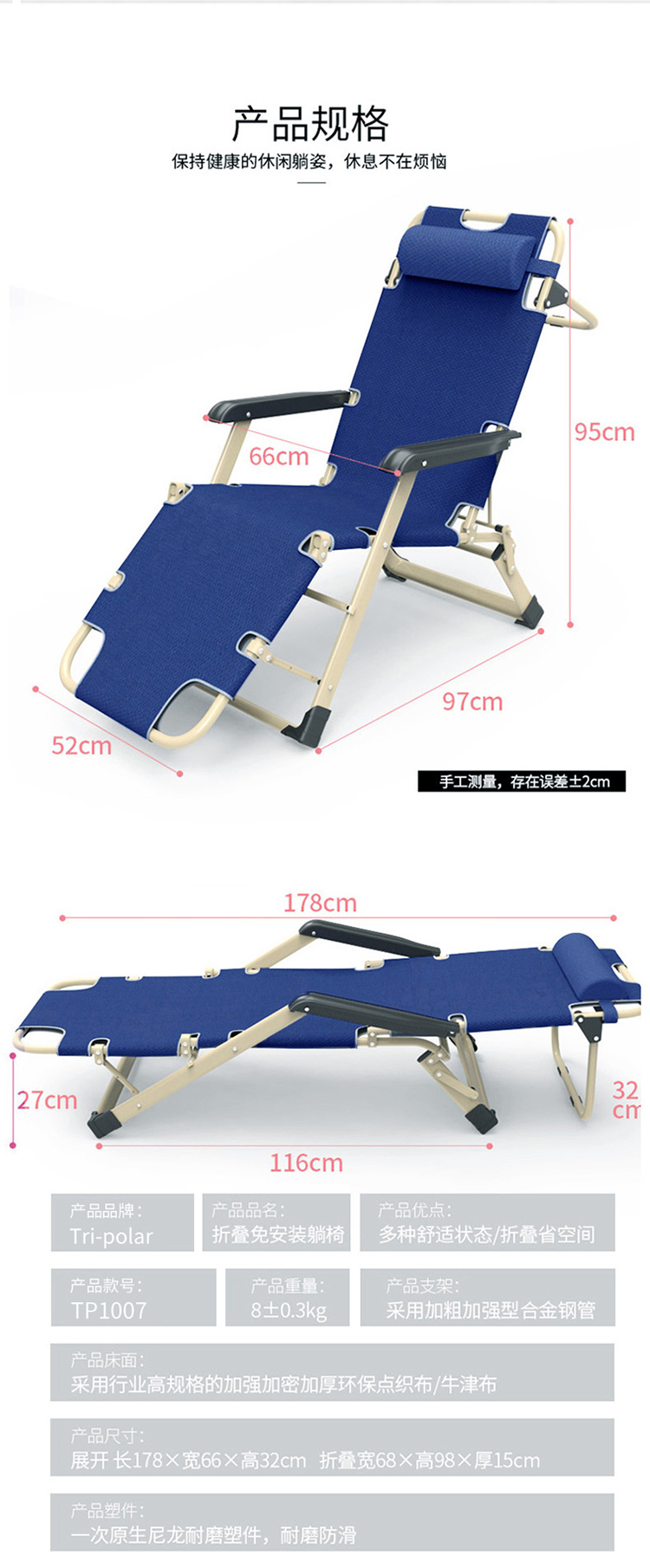 商品名称:三极 TP1007 178*66*32cm 折叠床 蓝色(单位:张)