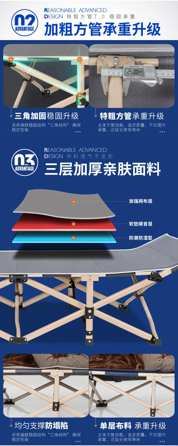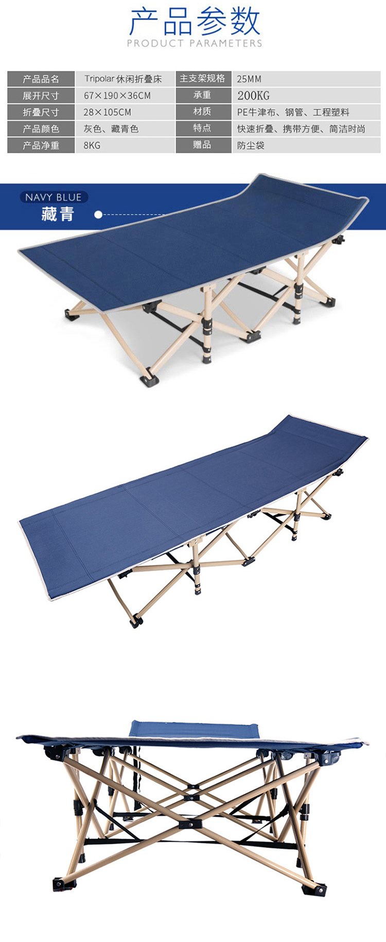 商品名称:三极 TP1008 190*67*36cm 折叠床 藏青色(单位:张)