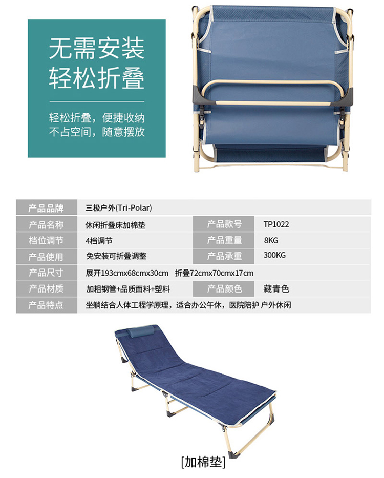 商品名称:三极 TP1022 方管加垫193*68*30cm 折叠床 藏青色(单位:张)