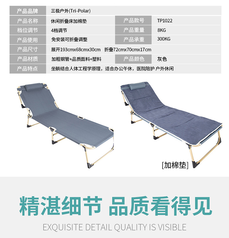 商品名称:三极 TP1022 方管加垫193*68*30cm 折叠床 灰色(单位:张)