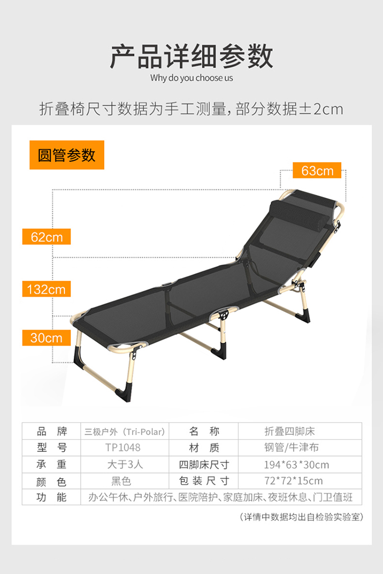 商品名称:三极 TP1048 194*63*30cm 折叠床 黑色(单位:张)