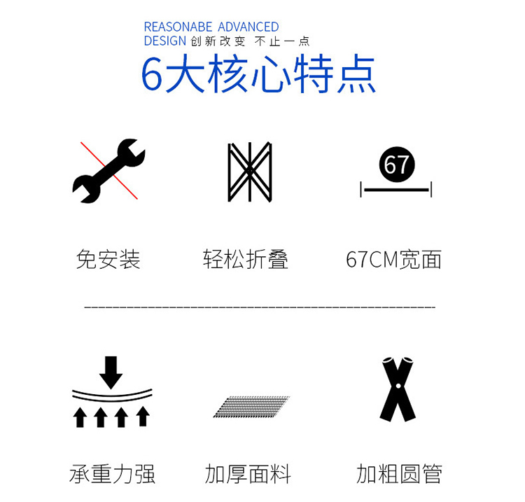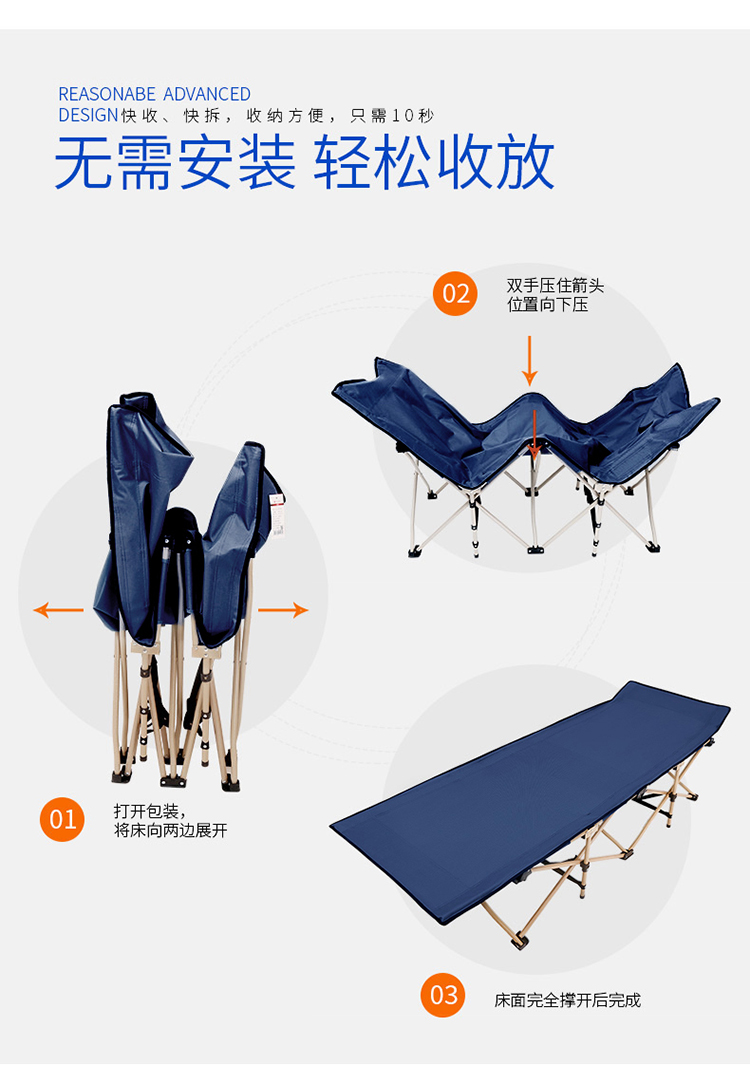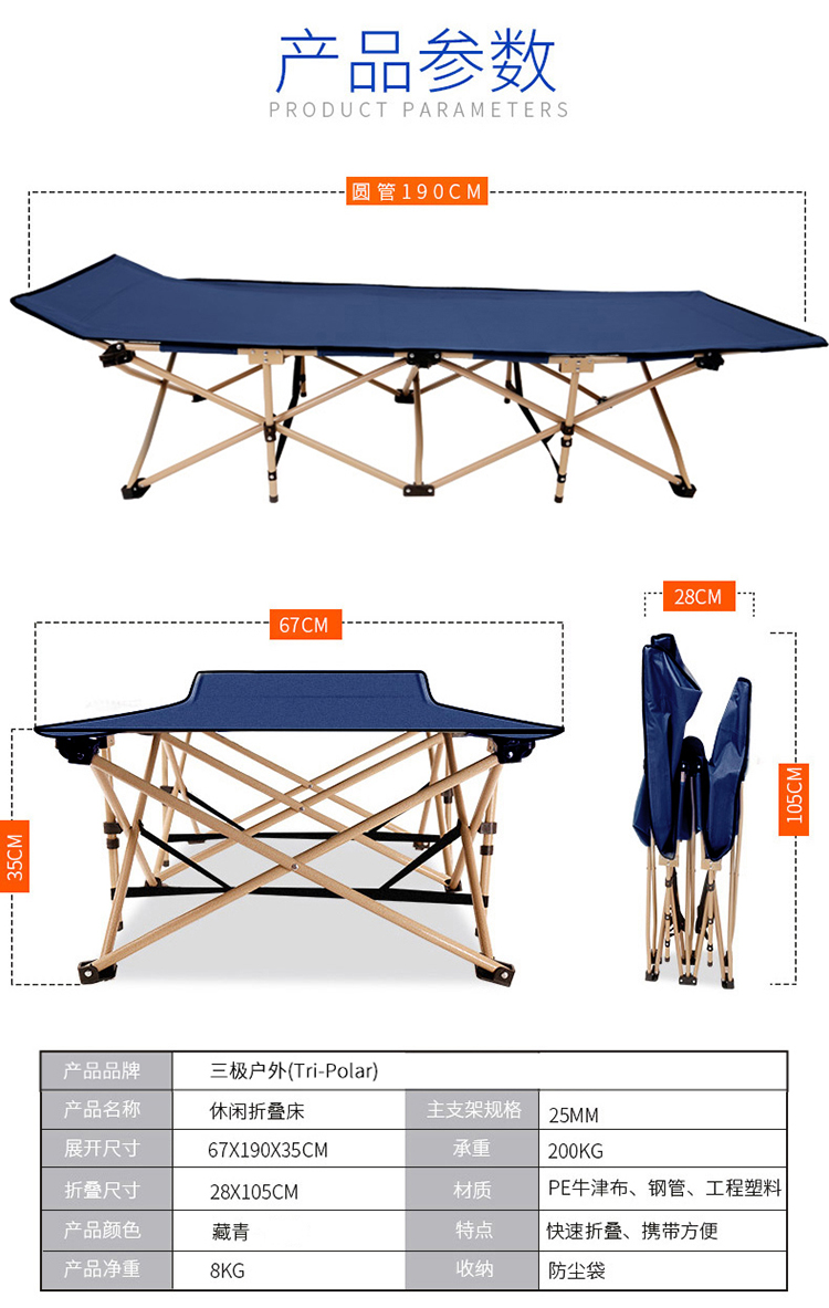 商品名称:三极 TP1108 190*67*35cm 折叠床 藏青色(单位:张)