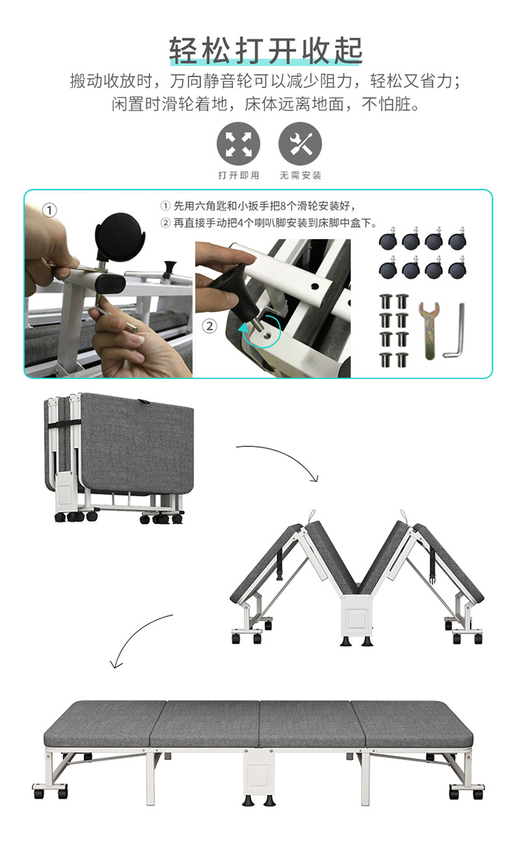 商品名称:三极 TP1018 190*60*28cm 可调节靠背款 折叠床 灰色(单位:张)
