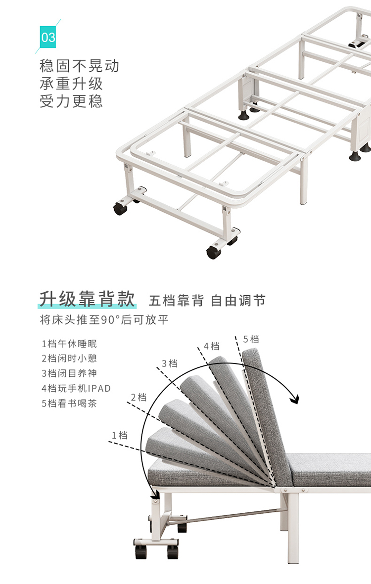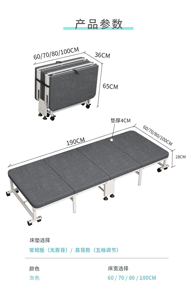 商品名称:三极 TP1018 190*70*28cm 可调节靠背款 折叠床 灰色(单位:张)
