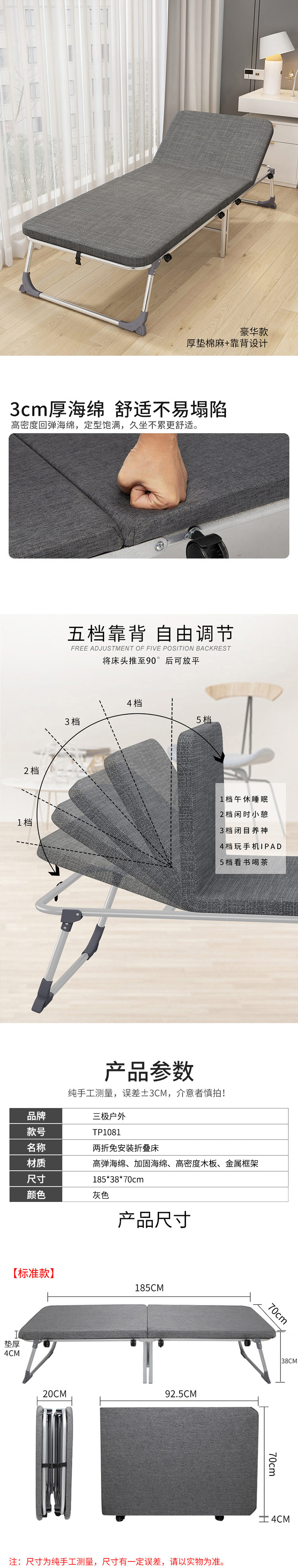 商品名称:三极 TP1081 185*70*35cm 折叠床 棉麻款 灰色(单位:张)