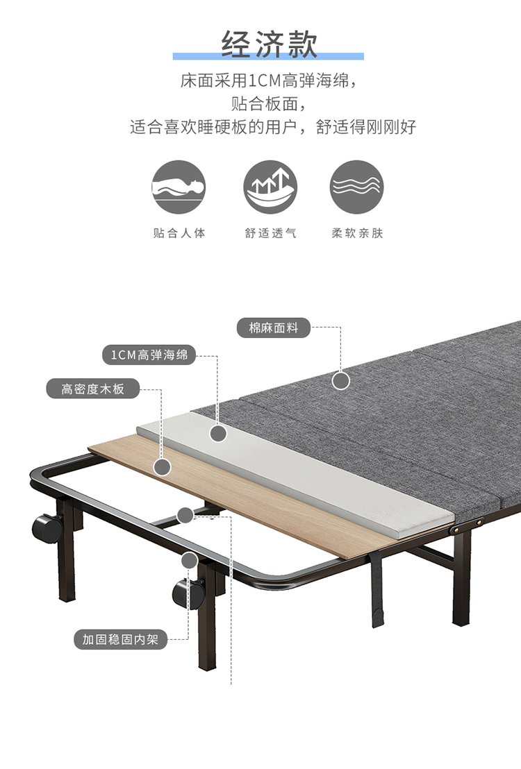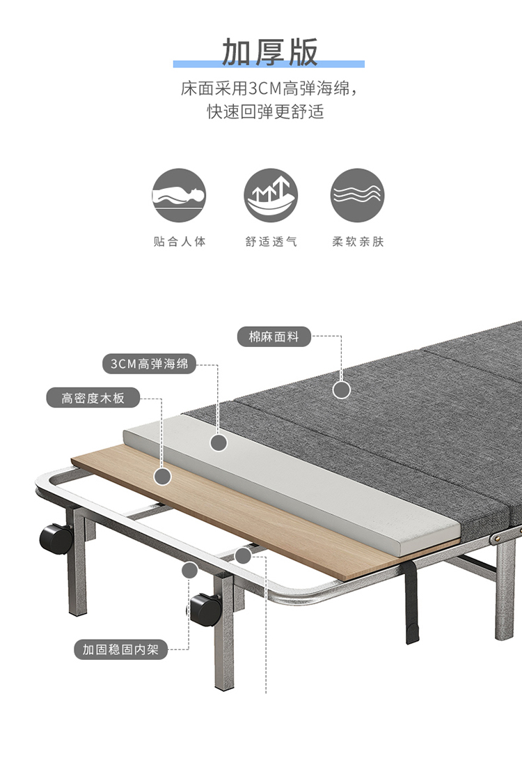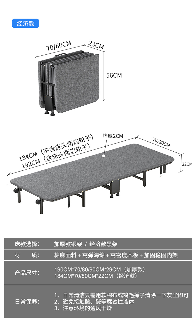 商品名称:三极 TP1292 184*70*22CM 2CM薄垫款 黑色框架 折叠床 灰色(单位:张)
