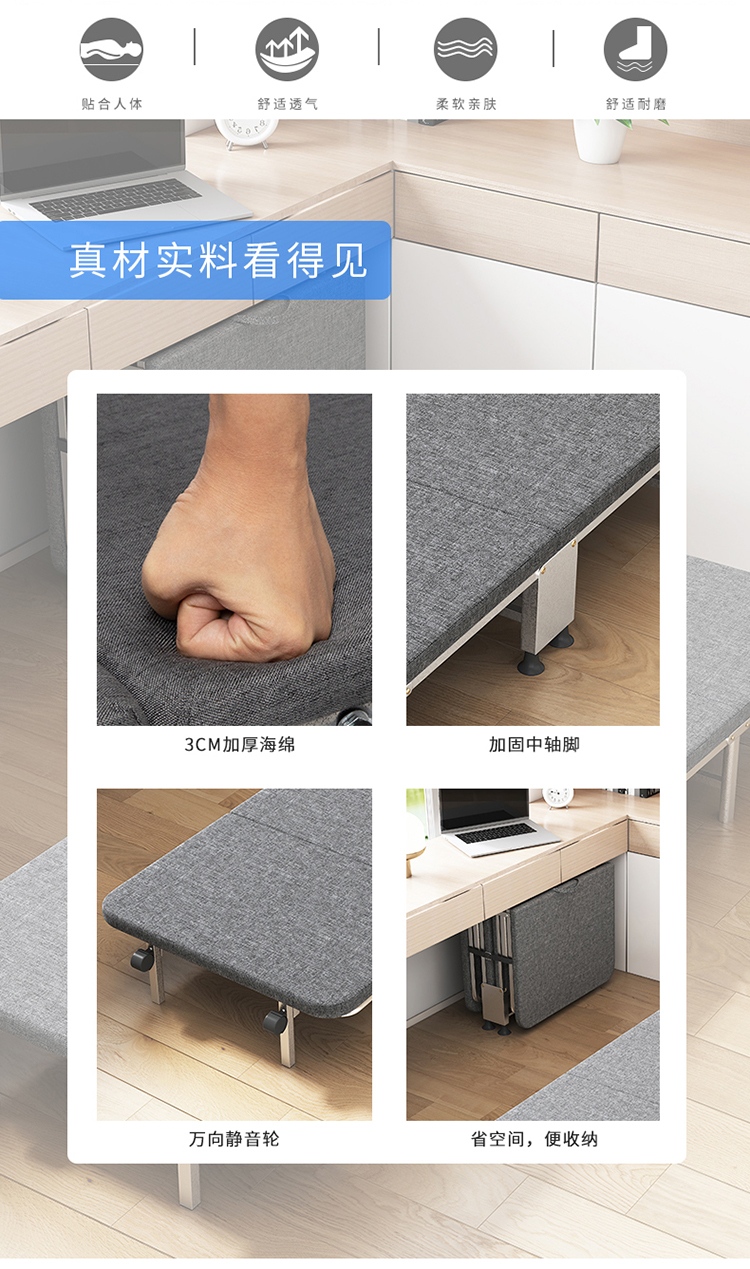 商品名称:三极 TP1292 190*90*29CM 4CM厚垫款 银色框架 折叠床 灰色(单位:张)