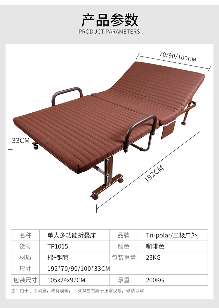 商品名称:三极 TP1015 192*90*33cm 折叠床 咖啡色(单位:张)