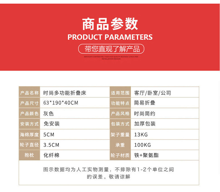 商品名称:三极 TP1046 190*63*40CM 折叠床 灰色(单位:张)
