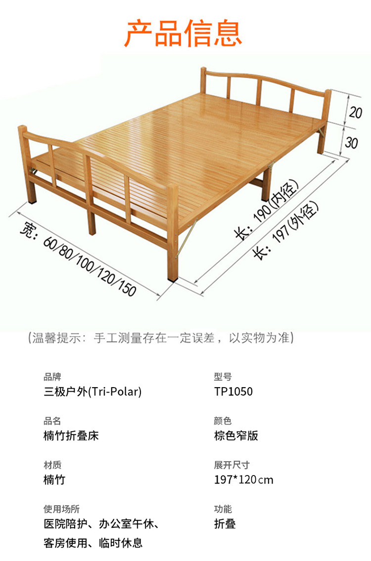 商品名称:三极 TP1050 120x197cm 折叠床 棕色(单位:张)