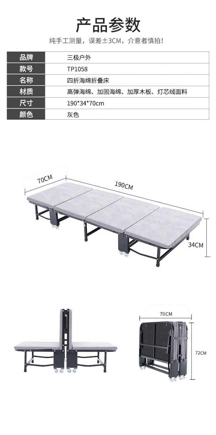 商品名称:三极 TP1058 190*70*34cm 折叠床 灰色(单位:张)